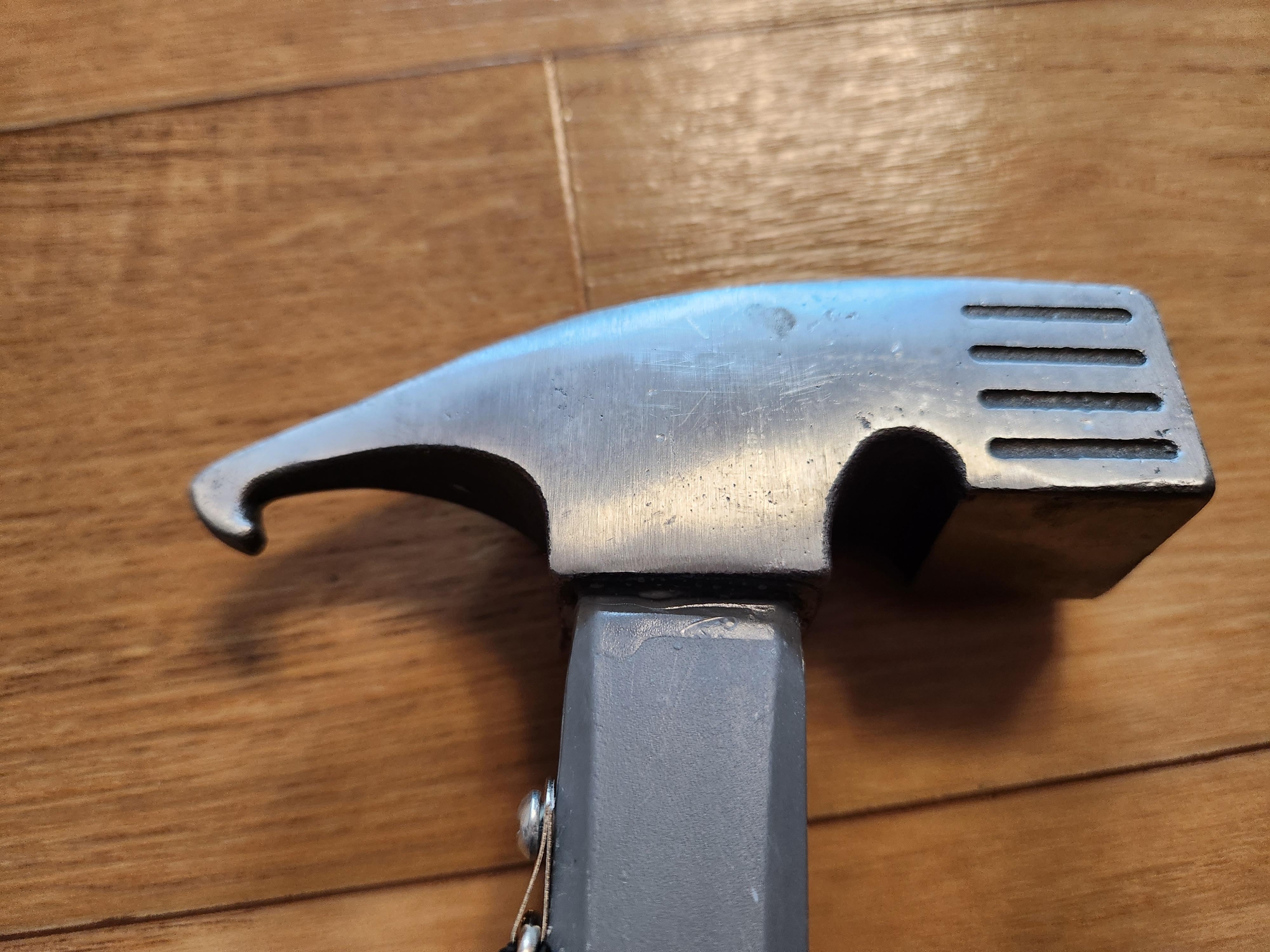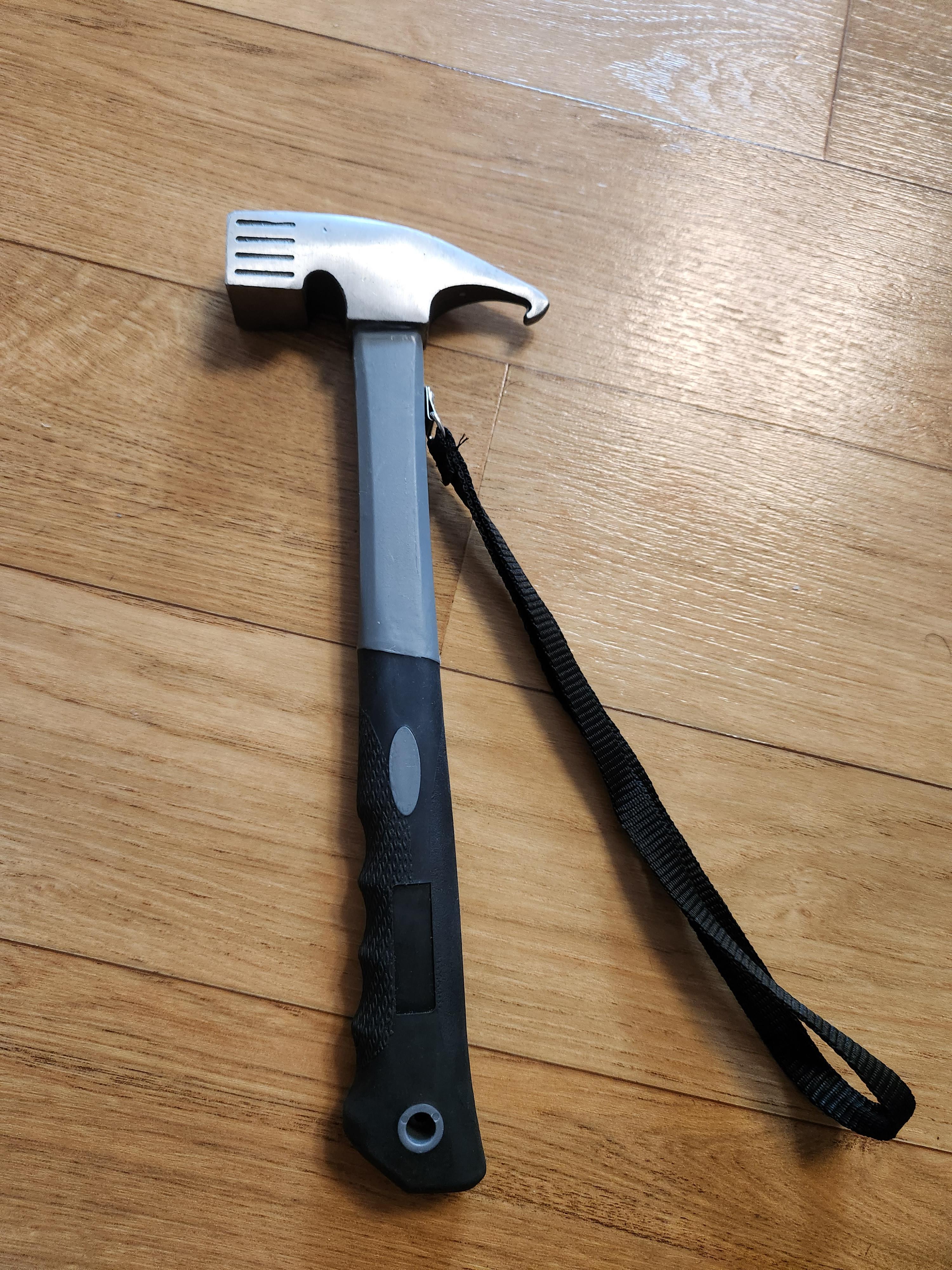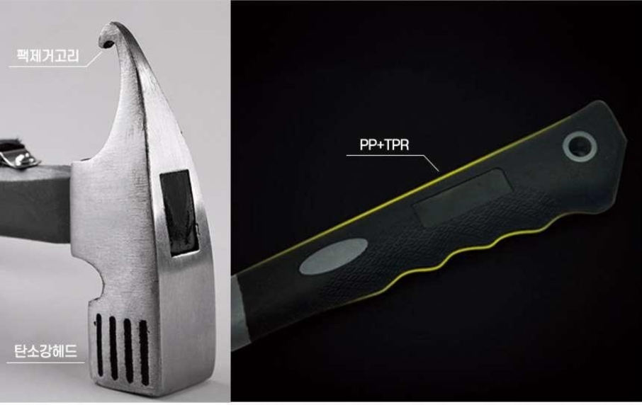 이 제품의 경우 배송 비 포함하여 1만 원 미만의 중국산 망치입니다. 오래된 덕진사망치 사용에 약간의 변화를 주고자 저렴한 가격에 부담 없이 구매해 봤습니다. 손잡이 끈은 매우 엉성하게 달려 있습니다.