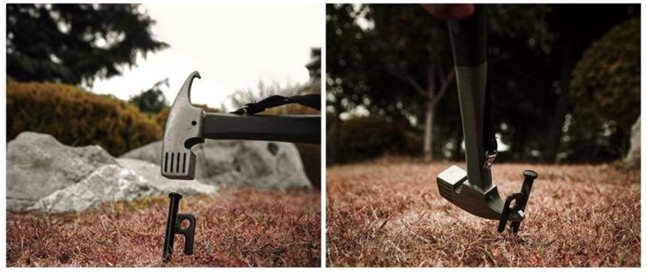 캠핑망치와 테이블 사이드 바스켓 거치대에 대해 소개해 볼까 합니다. 캠핑 망치는 주로 텐트 또는 타프 등을 설치하기 위해 캠핑(단조, 콜) 팩을 박을 때 주로 사용됩니다. 캠퍼들이 많이 쓰는 가성비 망치로는 덕진사 무진동 망치가 유명하고 적당한 무게와 면적으로 인해 팩을 박을 때 쉽게 정리가 되고 가격이 저렴한 편이어서 인기가 좋습니다. 망치는 굉장히 많은 종류가 있고 자신의 취향에 따라 다양한 망치들이 존재하고 사용 시에는 항상 다치지 않도록 주의하는 것이 가장 중요합니다. 그리고 캠핑팩을 박을 때는 항상 팩의 머리 부분 끝까지 박아 걸려 넘어지는 일이 없도록 해야 합니다. 또한 깊게 박아야 바람이나 흔들림 등에 의해 빠지지 않습니다. 추가적으로 약간의 설명을 더하여 팩에 대해 이야기하면 캠핑팩은 타프 설치 시 메인폴대 팩은 40cm, 사이드 폴대 쪽 팩은 30cm가 적당하고 텐트류의 팩을 설치할 때는 12cm 이상으로 사용하는 것이 좋습니다.