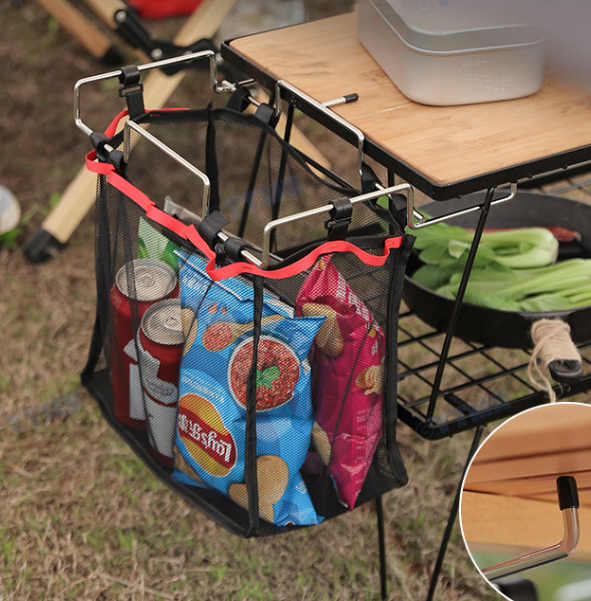 캠핑 테이블 바스켓은 캠핑이나 야외 생활을 할 때 사용되는 작은 바구니 모양의 컨테이너입니다. 캠핑할 때 테이블의 사이드에 거치하여 사용하고 식기, 음식, 음료 또는 쓰레기봉투 등으로 보관할 수 있는 제품입니다. 반드시 필요한 제품은 아니지만 캠핑생활을 더 편리하고 쾌적하게 해주는 유용한 아이템이 될 수 있습니다. 보통 테이블 위에서 자주 사용하는 용품이나 음식을 조리하는 경우 근처에 보관할 수 있는 바스켓이 있다면 훨씬 편리한 환경을 구축할 수 있지 않을까요? 이 제품은 테이블의 상판의 두께가 굵은 경우는 사용할 수 없는 제품으로 혹시 구매하실 경우 사이즈나 테이블 두께를 확인하고 사용하셔야 합니다. 제품자체는 나온 지 오래된 제품으로 호환성이나 활용성을 잘 체크하셔서 사용하시면 됩니다.