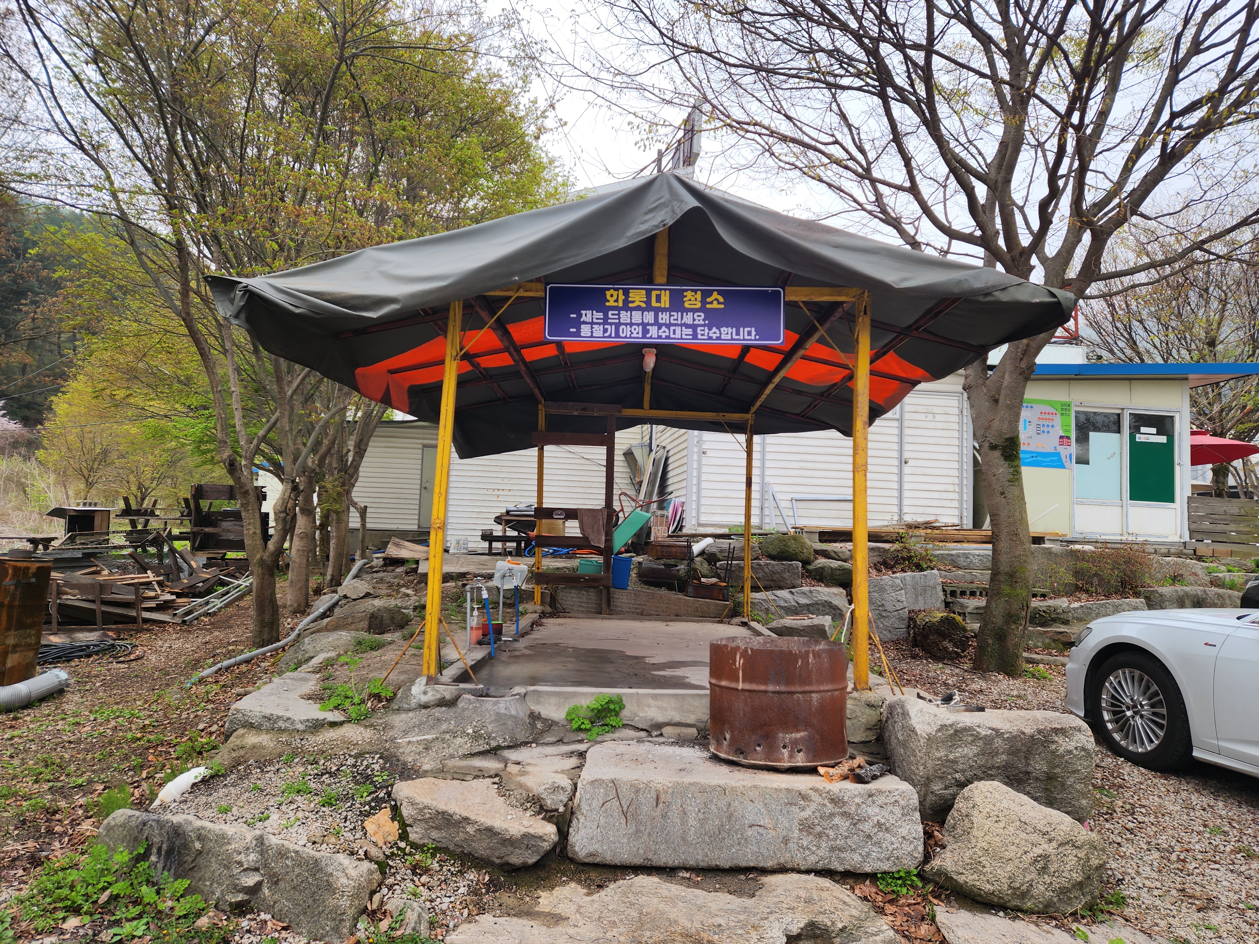 캠핑장 입구 쪽 옆에는 흡연구역이 지정되어 있습니다. 사이트에서 흡연 시 퇴장조치 되고 있습니다.