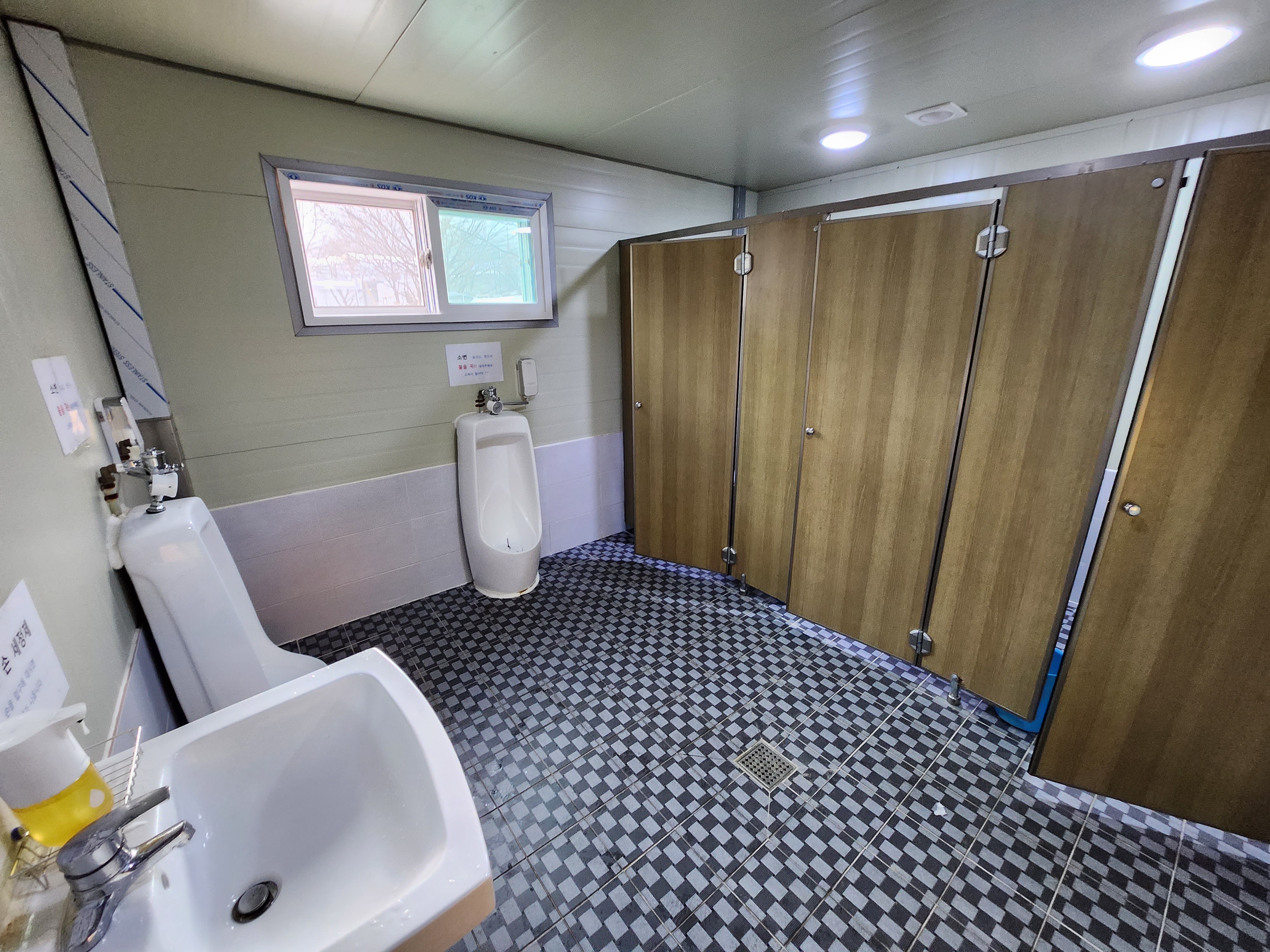 남자화장실입니다. 냄새도 안 나고 매우 깨끗하게 관리되고 있습니다.