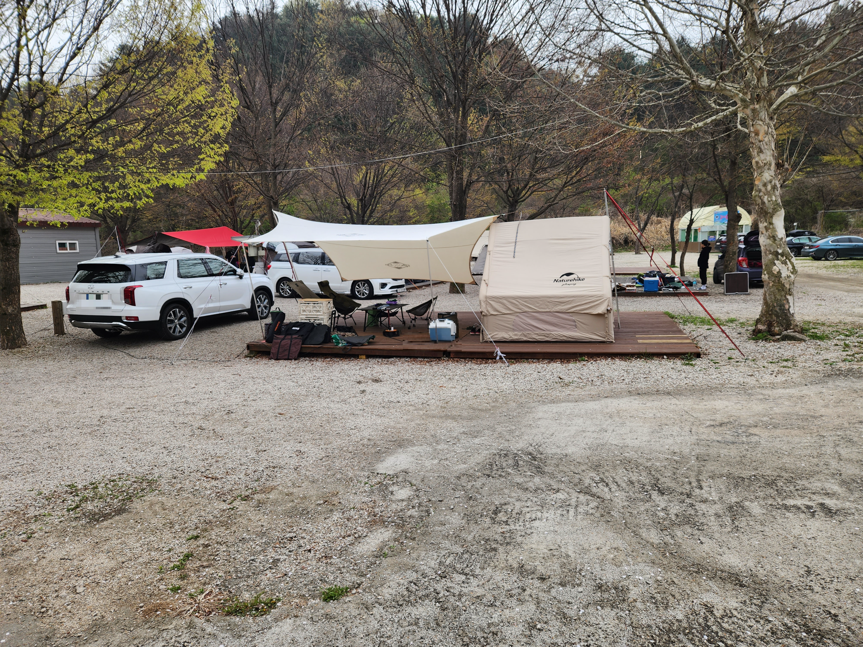 저희가 머물렀던 A-4는 사이트가 매우 넓은 데크로 타프+작은 크기의 텐트를 넉넉하게 설치할 수 있는 곳이며, 바로 옆에 주차가 가능합니다. 저는 개인적으로 캠핑장에서 넓은 데크사이트(A-1~A-5)와 S1, S2사이트가 명당으로 생각됩니다. 작은 데크들은 사이트가 좀 작은 편이니 참고하세요.