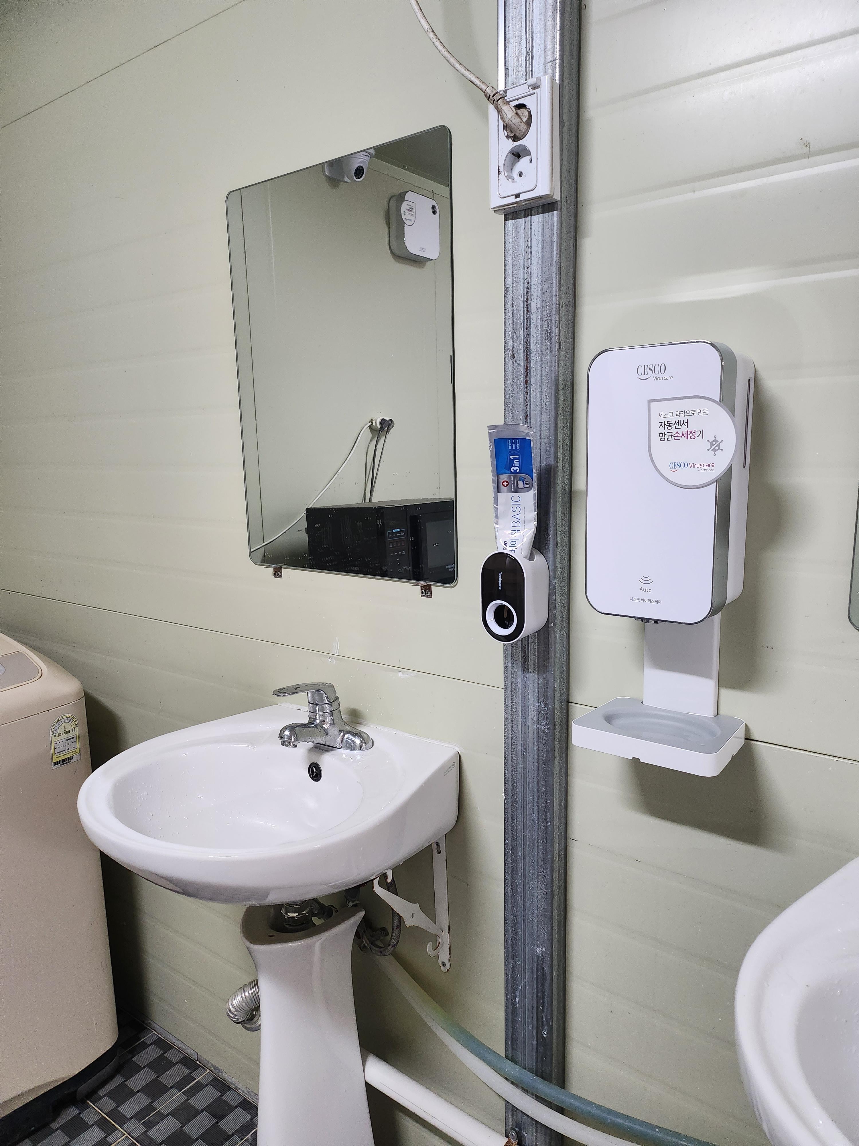 전자레인지도 준비되어 있고 세면대에는 자동손세정 와 치약도 있습니다.