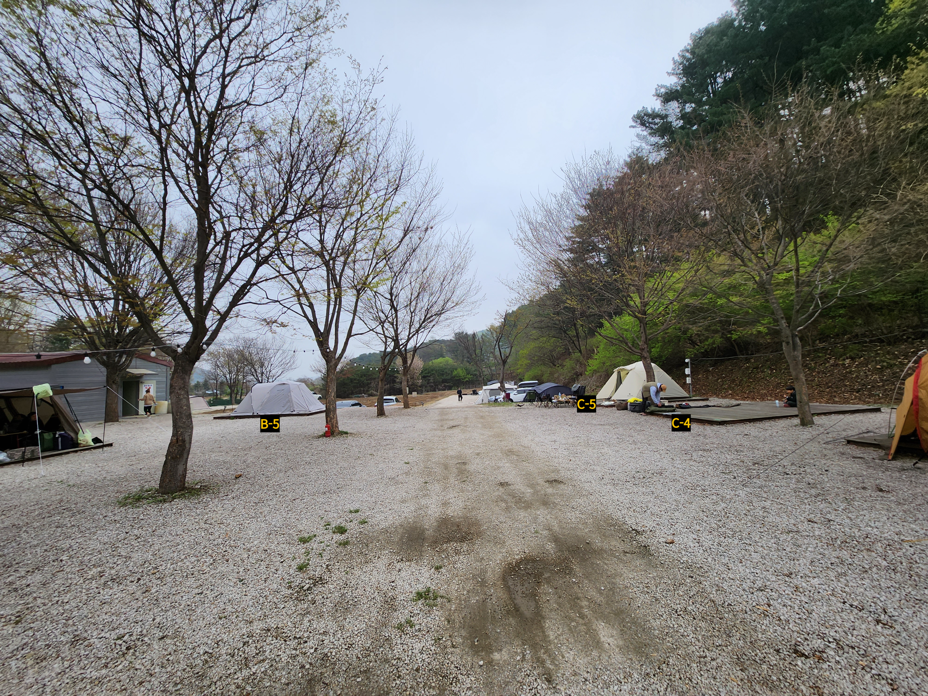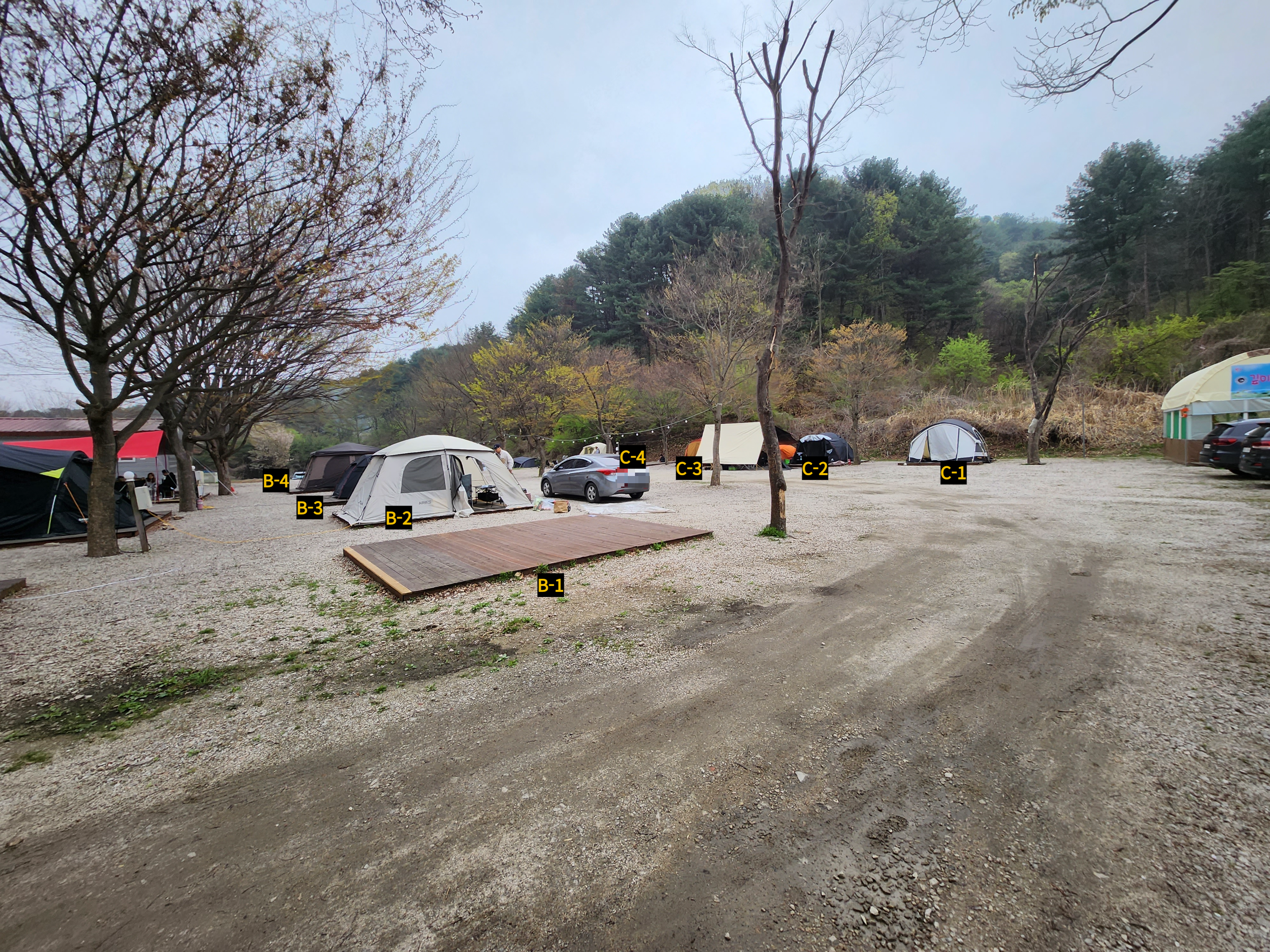 화장실과 개수대가 있는 건물 바로 앞에 B-5 사이트 그 맞은편에 C-5, 그 옆에 C-4 사이트입니다.