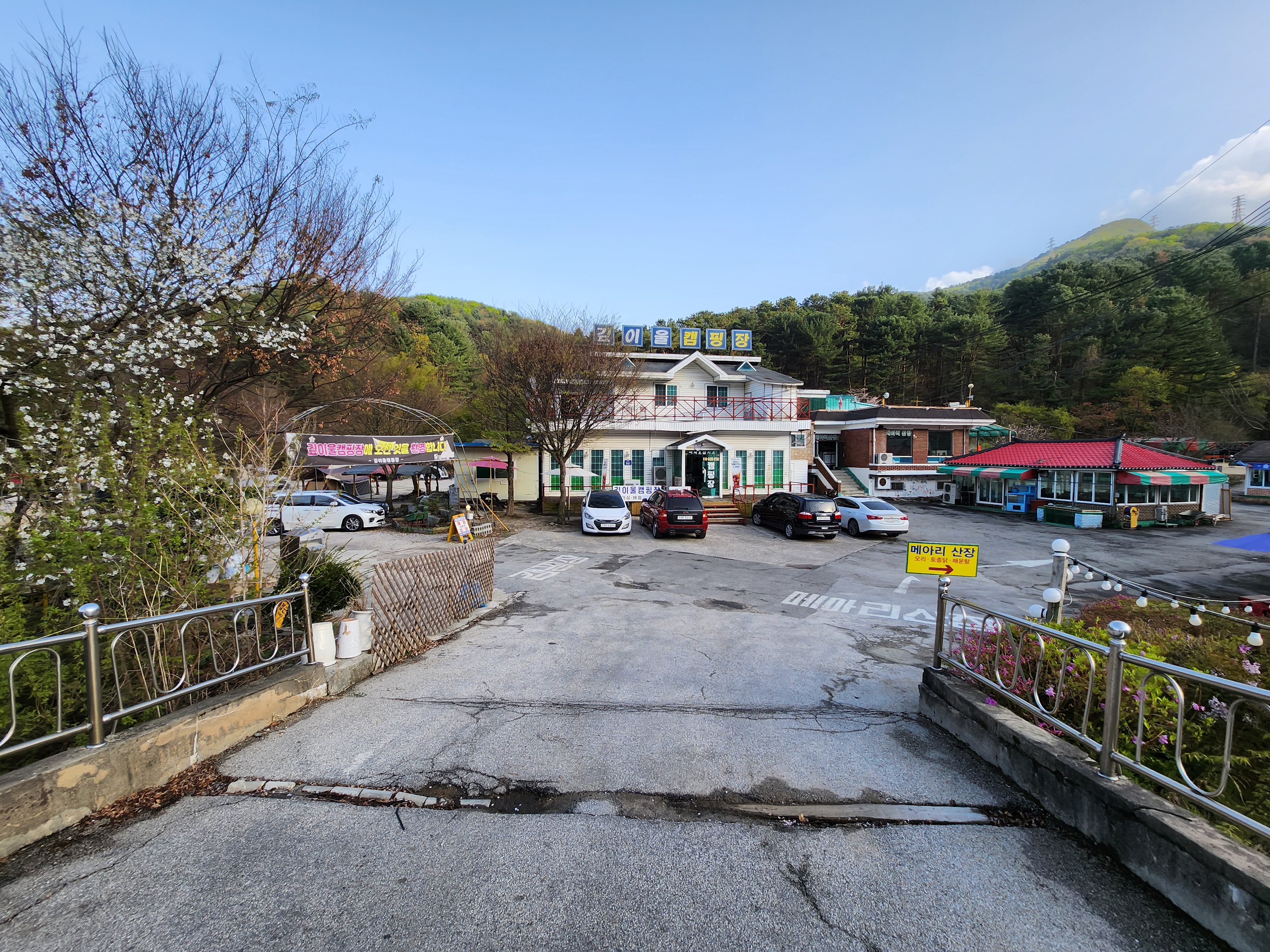 캠핑장은 길에서 약간 경사진 언덕길을 내려오면 메아리산장과 깊이울캠핑장이 있습니다.