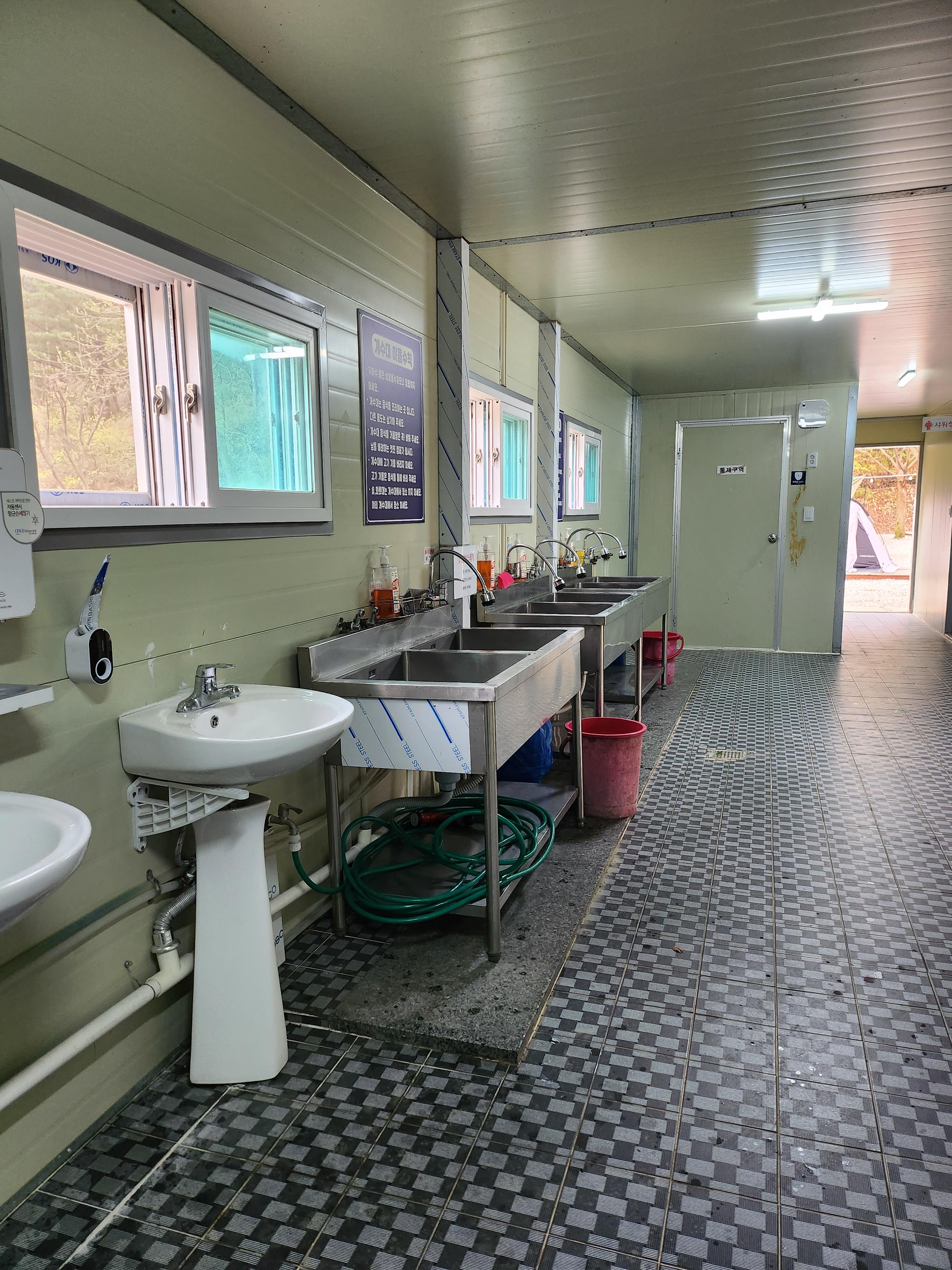 개수대마다 수세미와 설거지 세재가 구비되어 있고 샤워실은 사진에는 없지만 클렌징폼, 바디워시, 샴푸, 린스까지 준비되어 있어 배려심이 느끼지는 곳입니다.