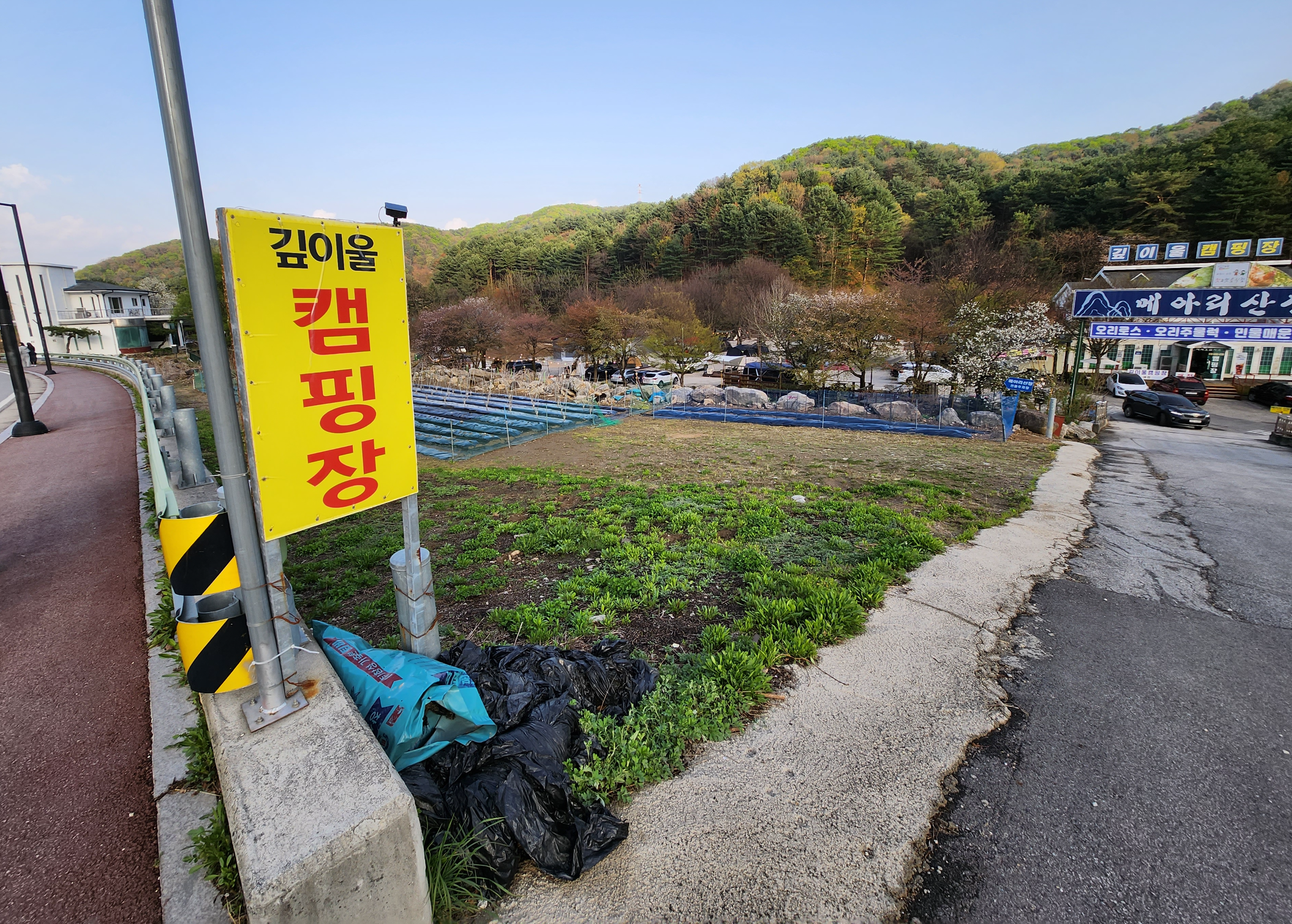 캠핑장은 길에서 약간 경사진 언덕길을 내려오면 메아리산장과 깊이울캠핑장이 있습니다.