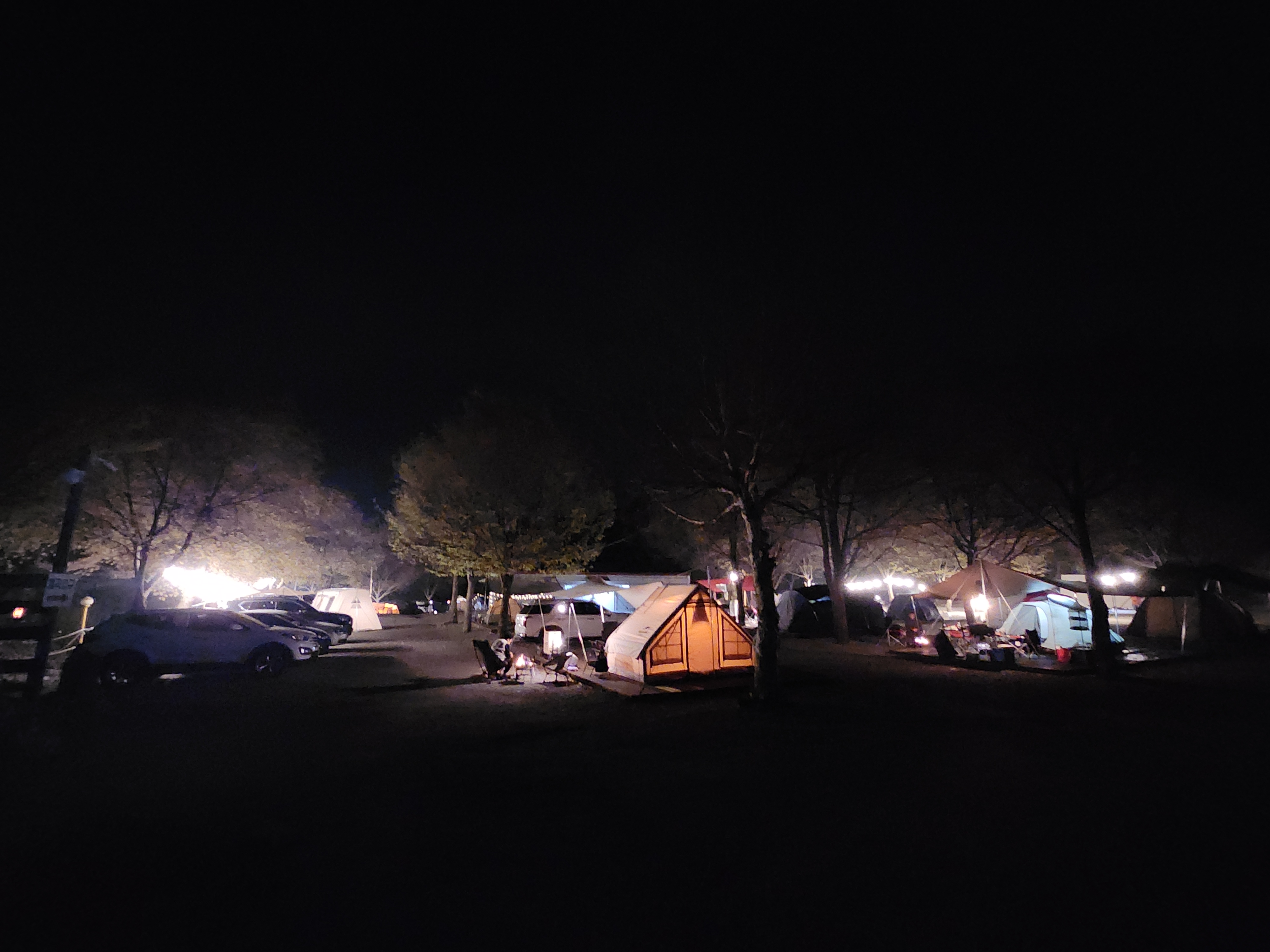 밤에 본 캠핑장 모습입니다. 사진을 찍어 놓고 이제 와서 보니 멋진 야경이네요.