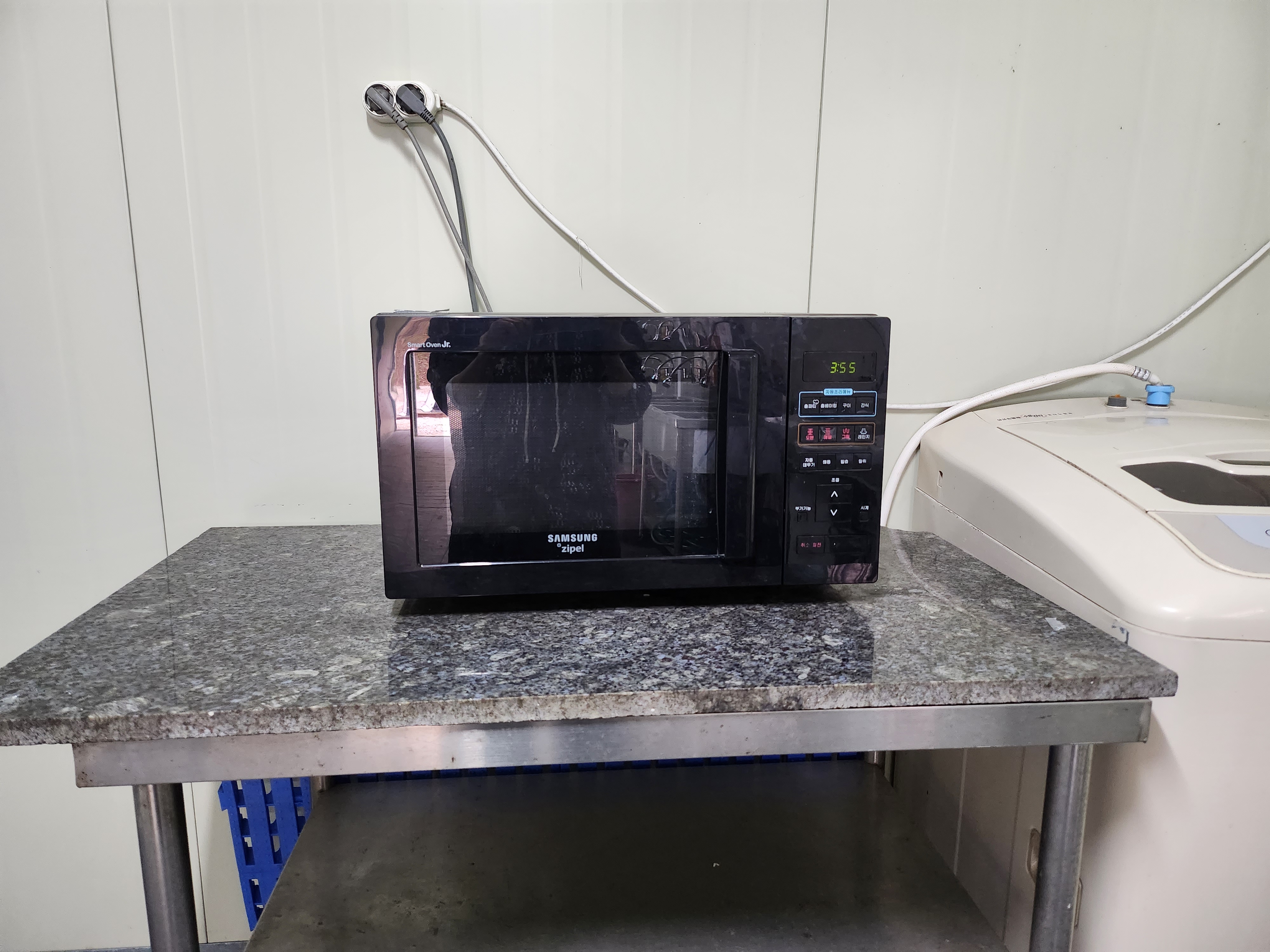 전자레인지도 준비되어 있고 세면대에는 자동손세정 와 치약도 있습니다.
