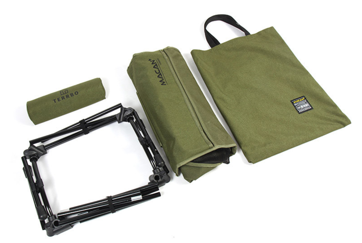 테르보 마칸 플러스 와이드 경량 체어는 캠핑고릴라 포천점에 잠시 구경 갔다가 앉아보니 너무 편해서 구매한 제품입니다. 신상품은 재고가 없었고 기존 판매가에서 소폭 할인이 되는 진열제품을 가져왔습니다. 색상은 카키와 블랙색상이 있었고 진열상품도 카키 1, 블랙 1개씩 있었습니다. 저는 그중에 카키 하나를 픽해서 가져왔습니다. 기본적으로 제품의 콘셉트와 체어의 구조는 타브랜드를 많이 카피해서 제작된 제품이란 생각이 듭니다. 이 제품은 체어의 높이와 다양한 각도로 조절할 수 있는 점이 가장 큰 장점입니다. 체어의 앞쪽 부분이 뒤쪽보다 높아지면 자연스럽게 리클라이너 같은 각도를 만들 수 있습니다. 그래서 매우 편안한 자세를 만들 수 있습니다.