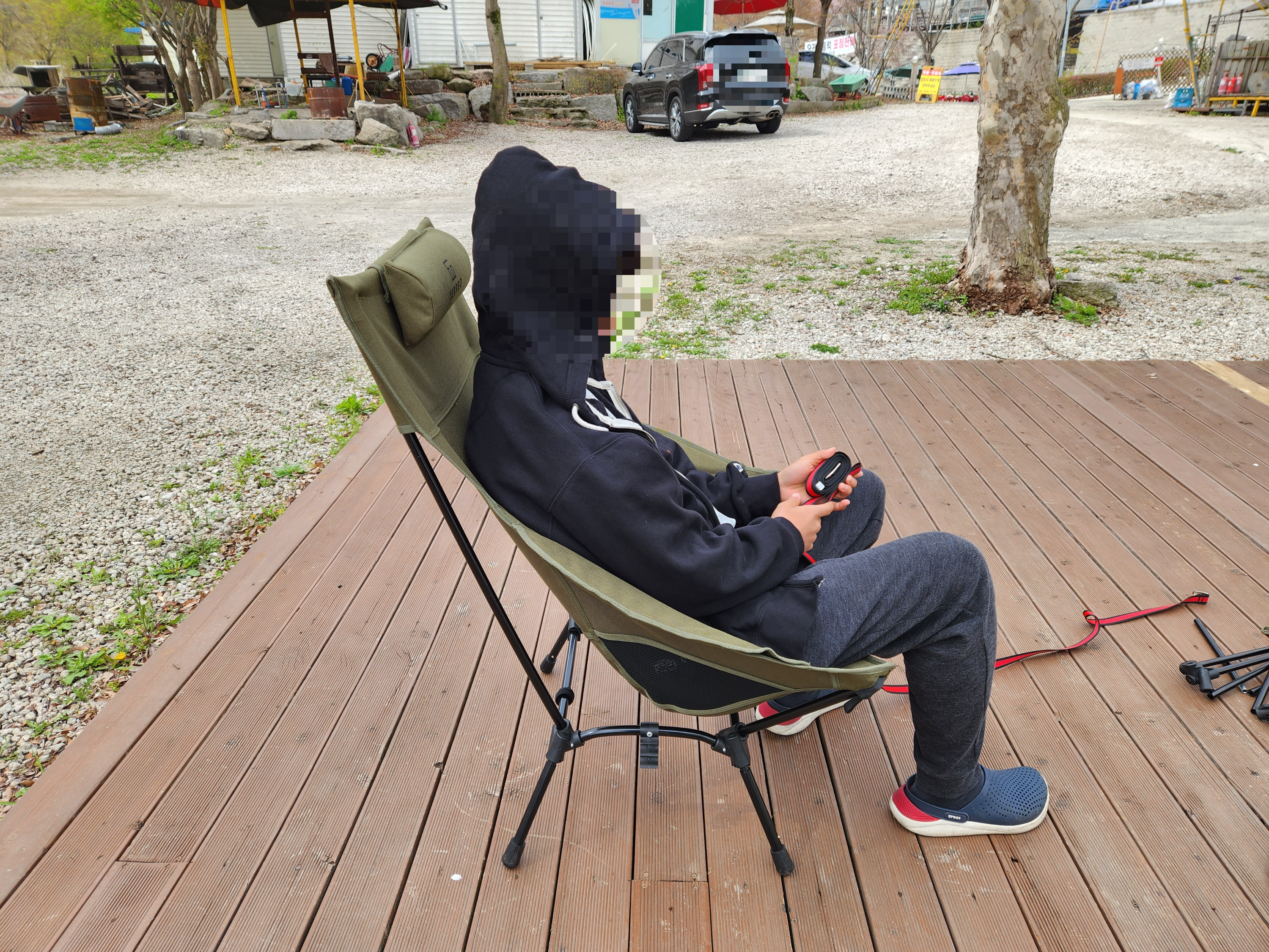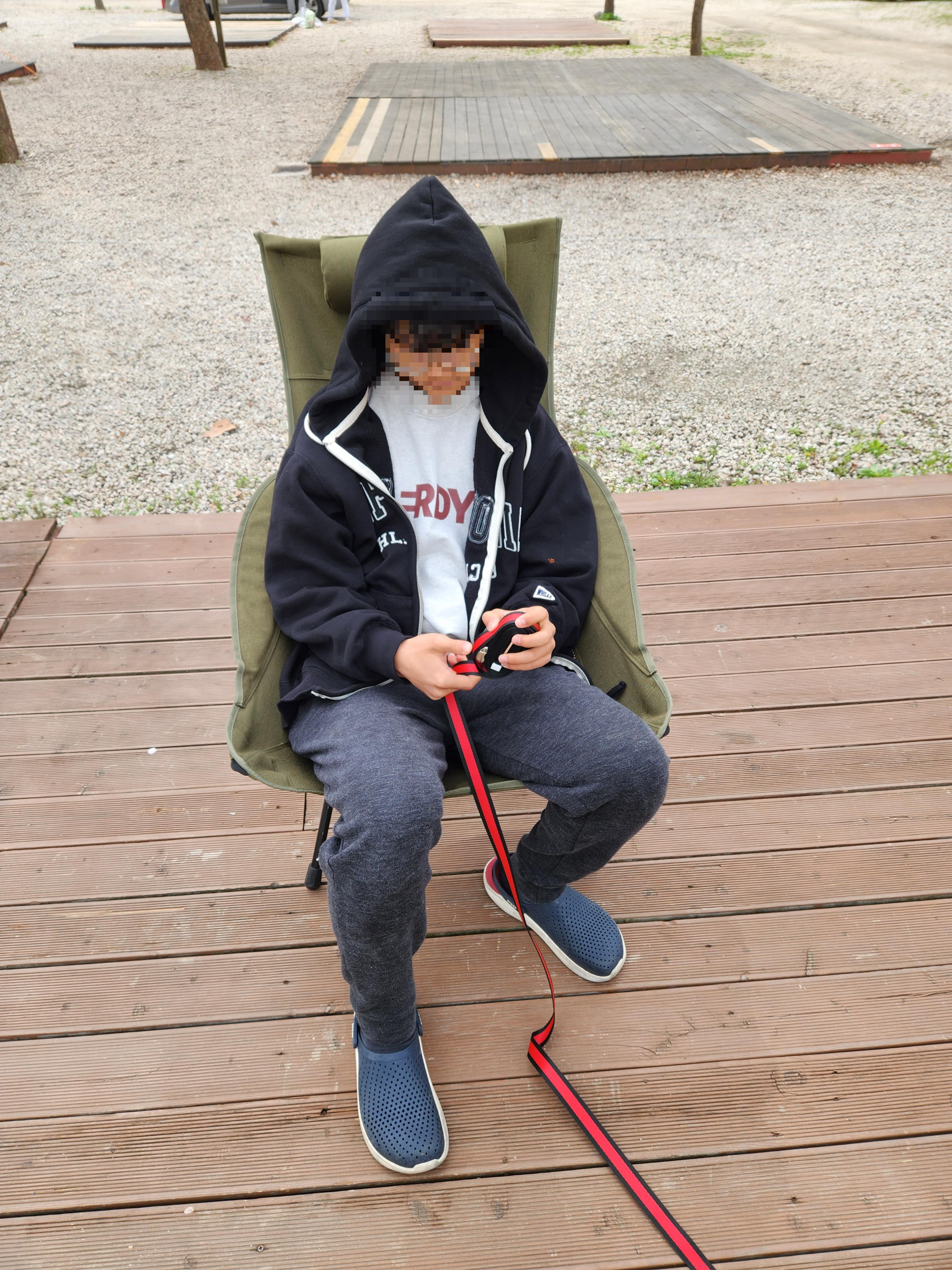 중학생 아들이 타프 스트랩을 감으면서 앉아있는 모습인데 편안해 보였습니다.