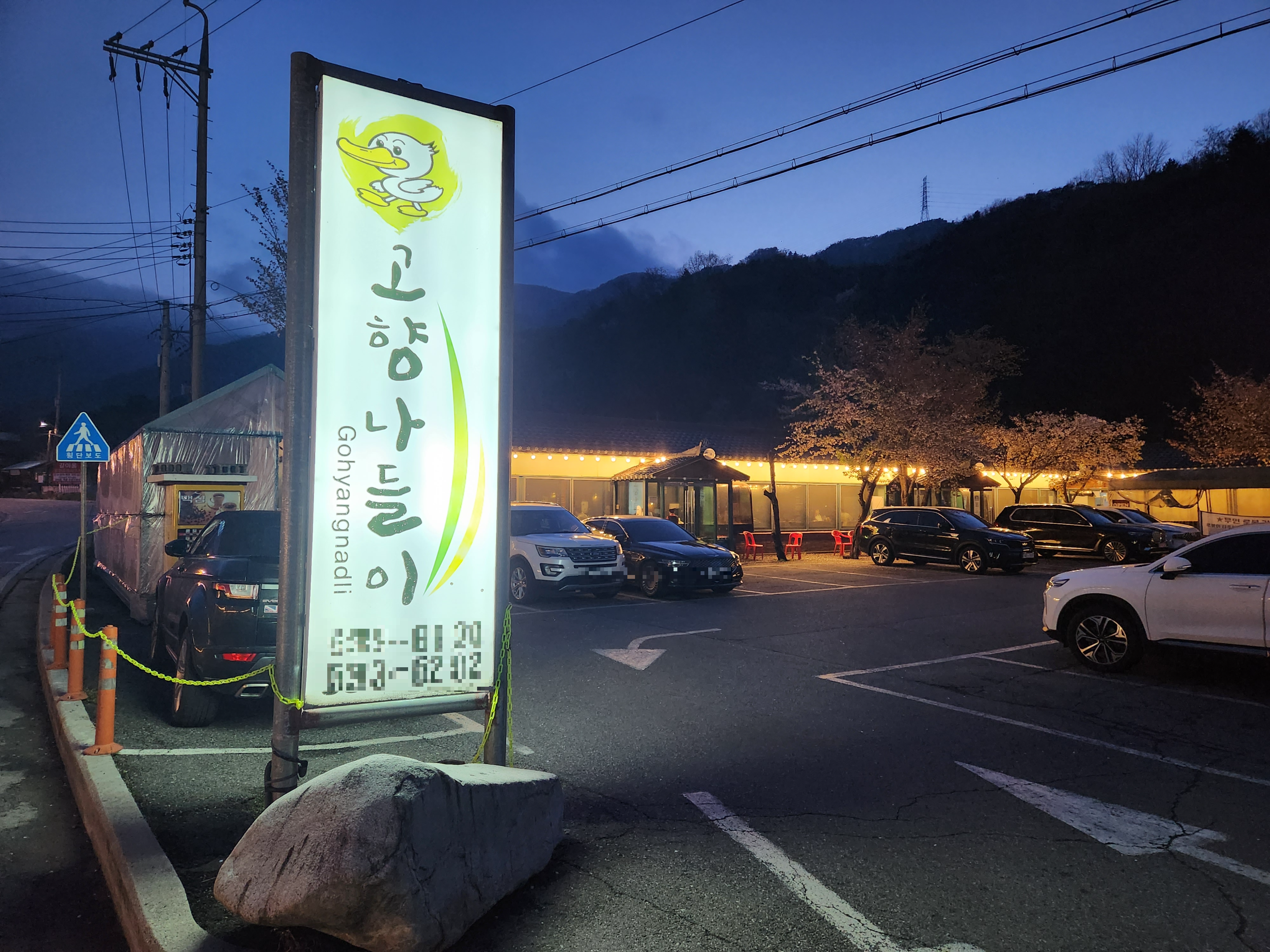 포천 깊이울 캠핑장 부근에 있는 오리구이 전문점 고향나들이입니다. 주차장은 100대도 넘게 가능하고 도로를 기준으로 양옆으로 가게가 있는데 같은 곳입니다. 정확한 히스토리는 모르겠지만 장사가 잘 돼서 주변 가게를 하나씩 인수해서 확장해 나가는 모습으로 보입니다. 점심이나 저녁시간에 가시면 웨이팅을 하실 수 있는데 워낙 크기가 커서 금방 입장 가능합니다. 술 한잔 하기 좋은 메뉴인데 위치가 너무 안쪽이라서 대리 부르기가 애매한 곳으로 한분이 희생하시면 가족단위로 방문해서 먹기 너무 좋은 곳입니다.