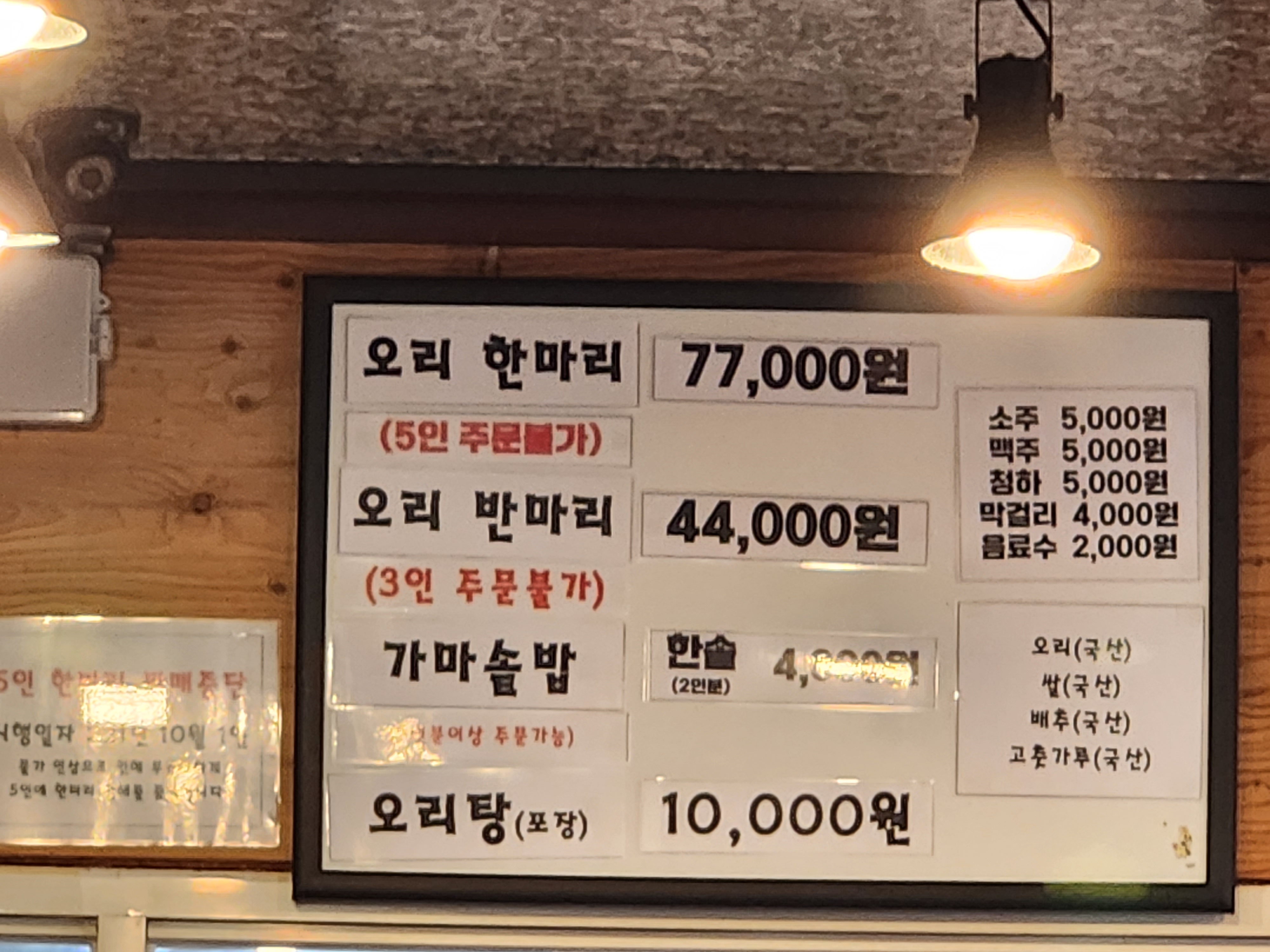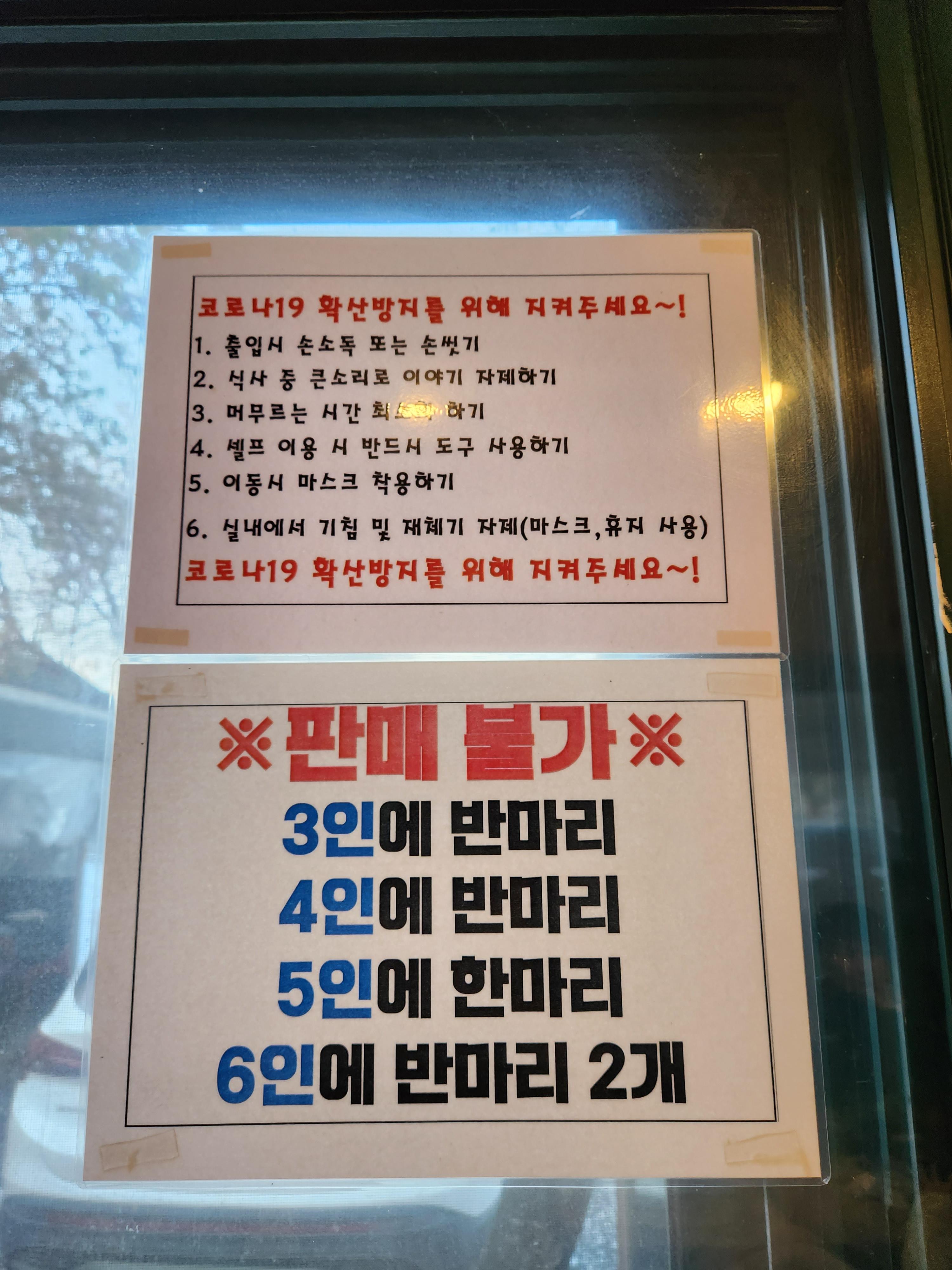 이곳은 양이 푸짐하다 보니 여러 명이 와서 조금 시켜드시는 분들이 많이 계셨는지 인당 주문 수량이 딱 정해져 있습니다. 2인 반마리, 3~4인 한 마리, 5인~6인 한 마리 반으로 이해하시면 됩니다.