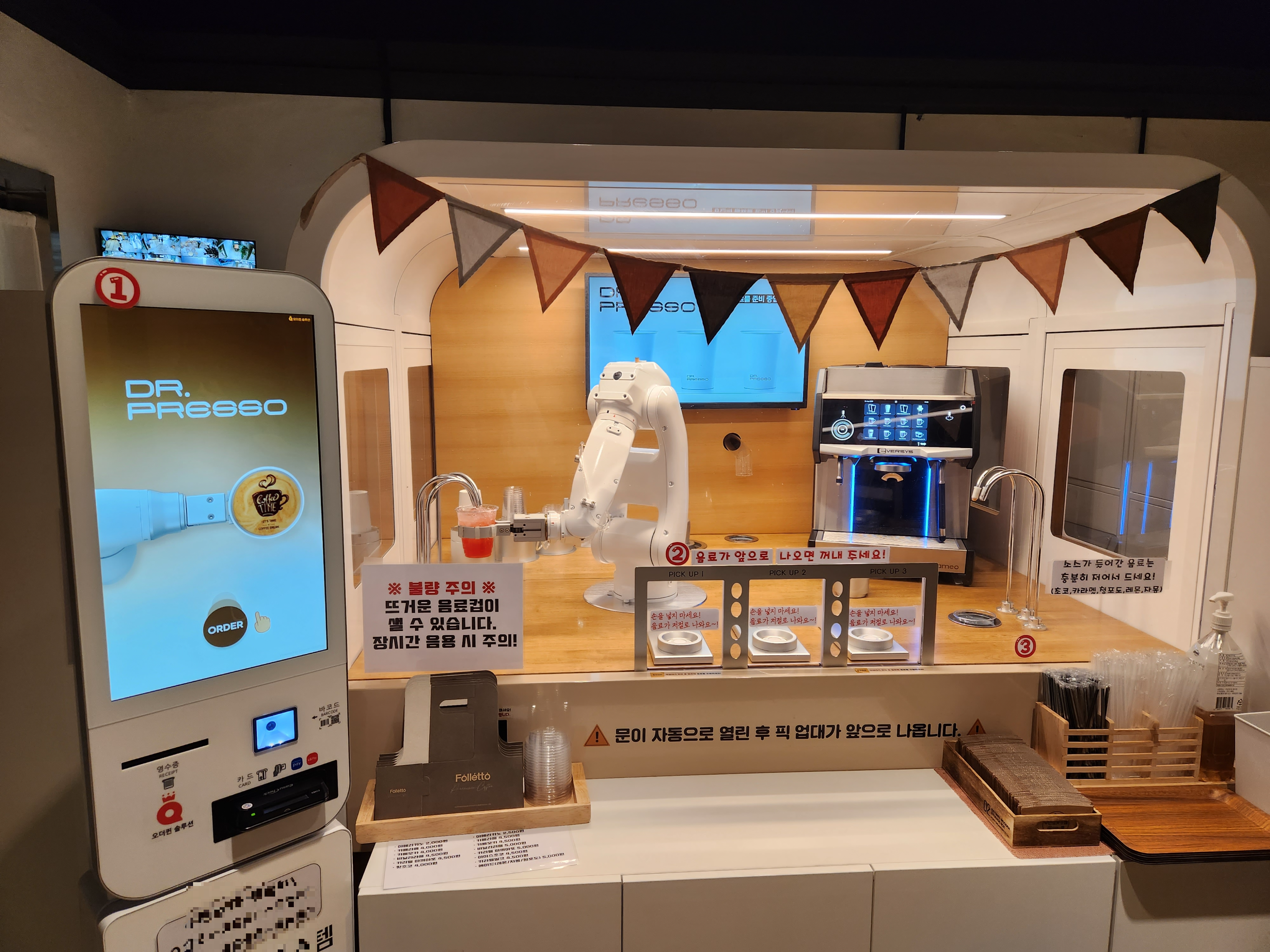 이곳은 오리고깃집에서 운영하고 있는 무인카페로 키오스크로 주문하면 로봇이 알아서 잘 만들어 줍니다. 커피맛은 괜찮은 편이고 에이드가 정말 맛있습니다.