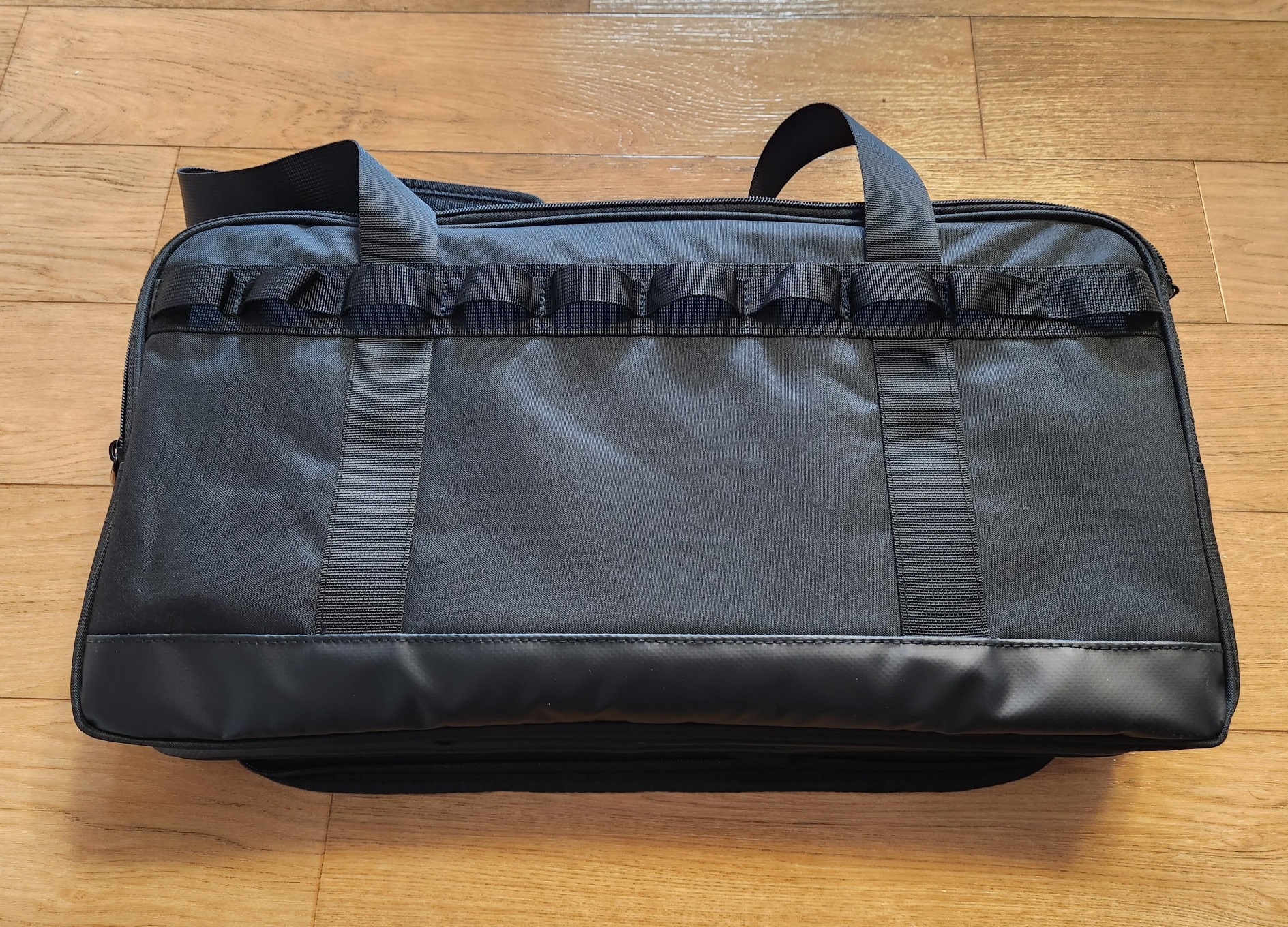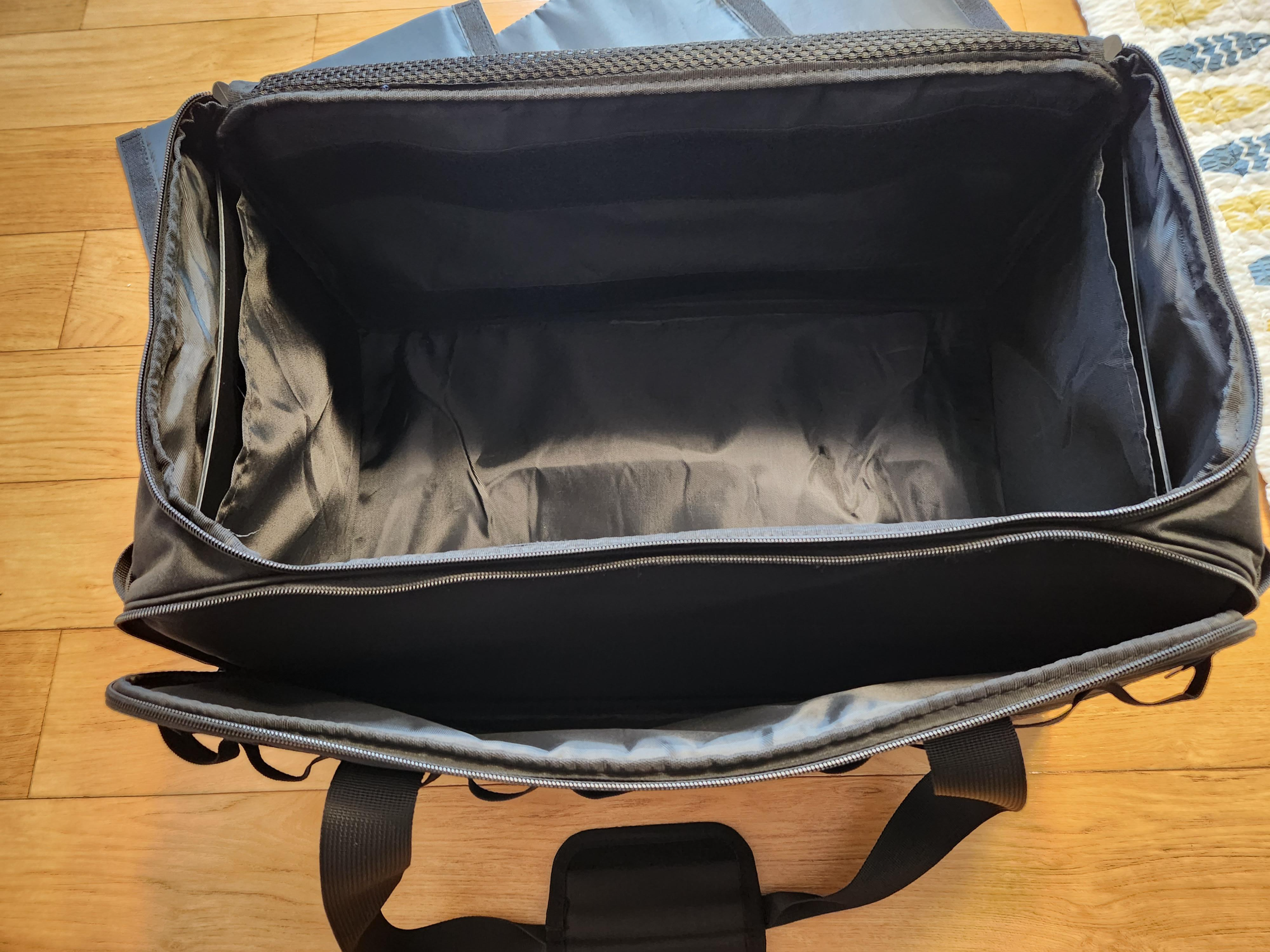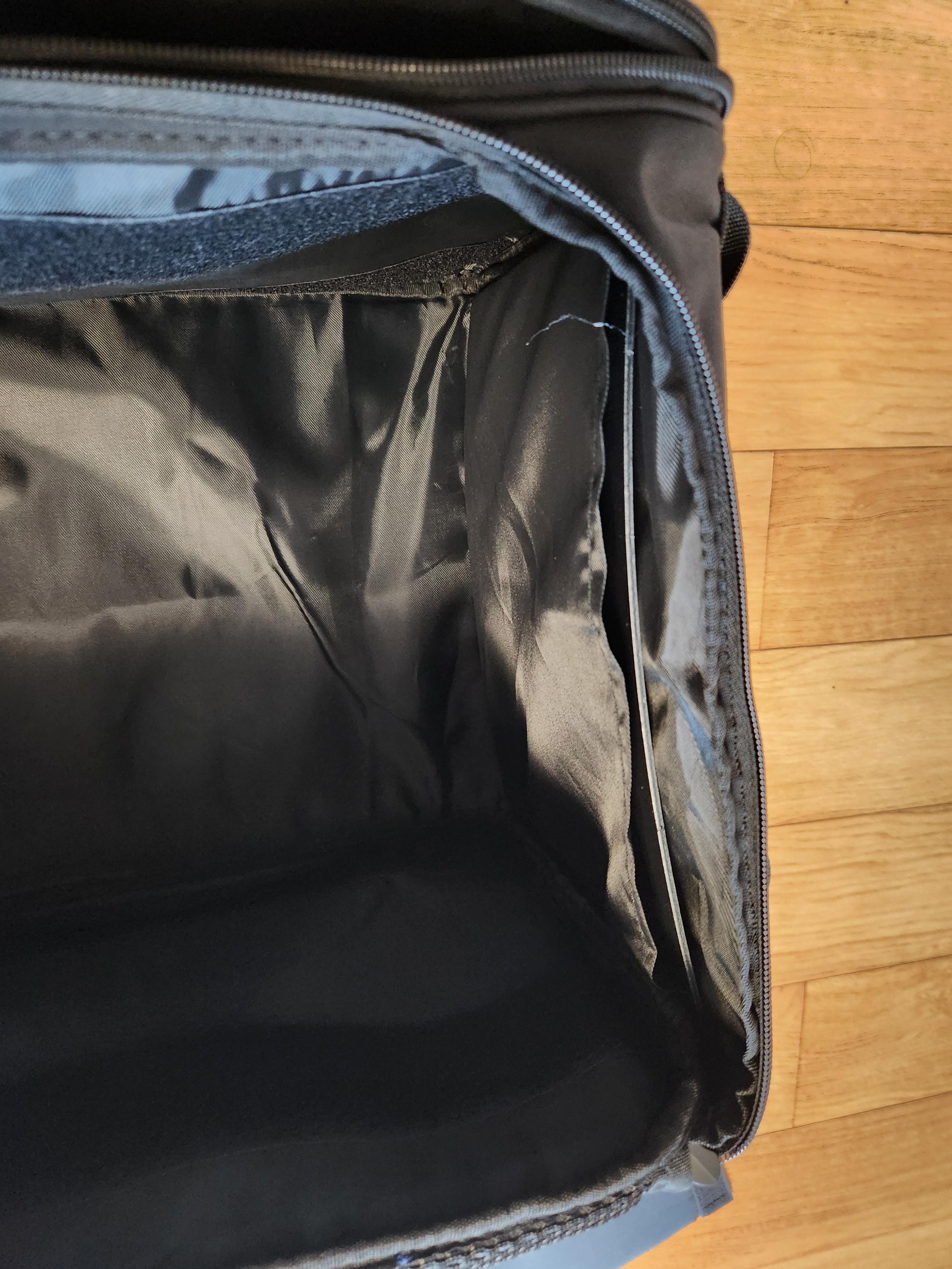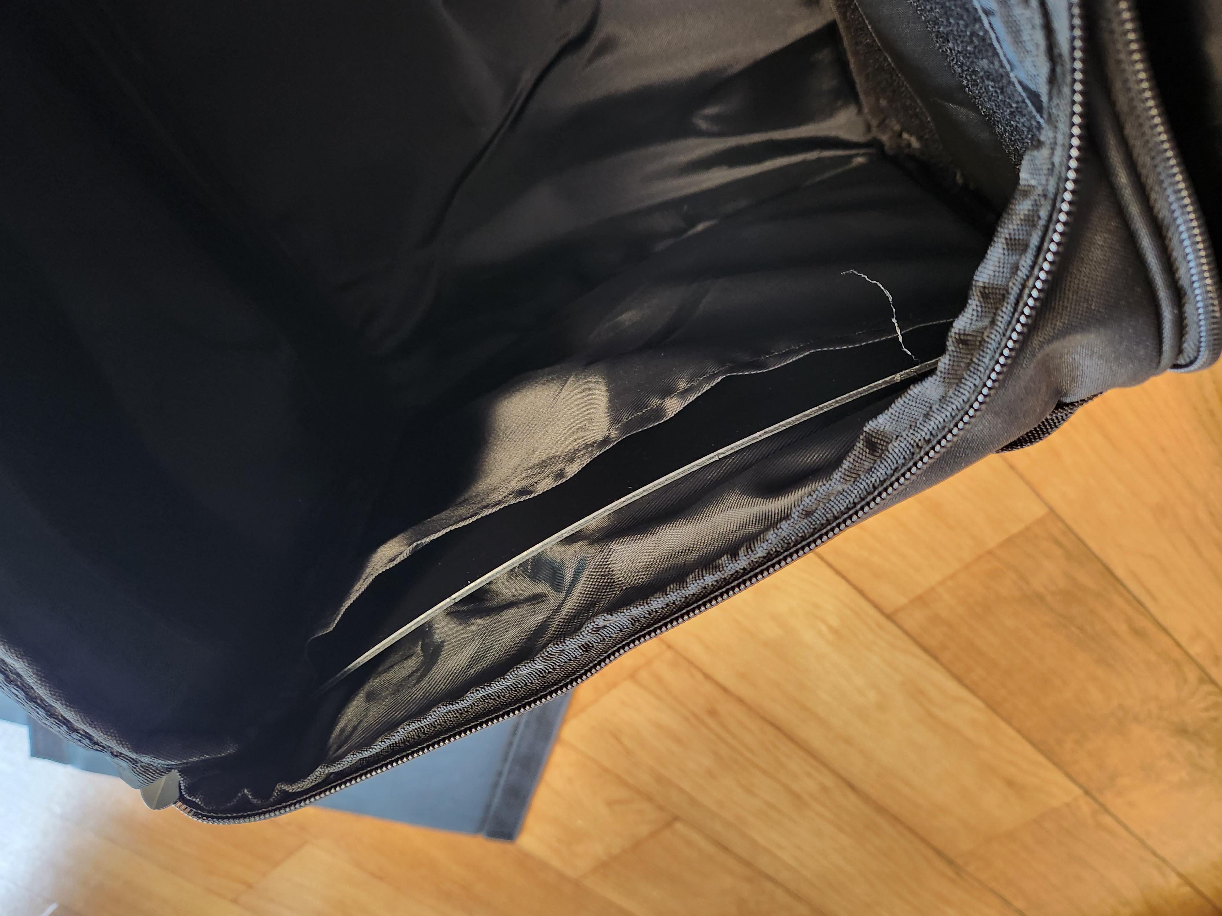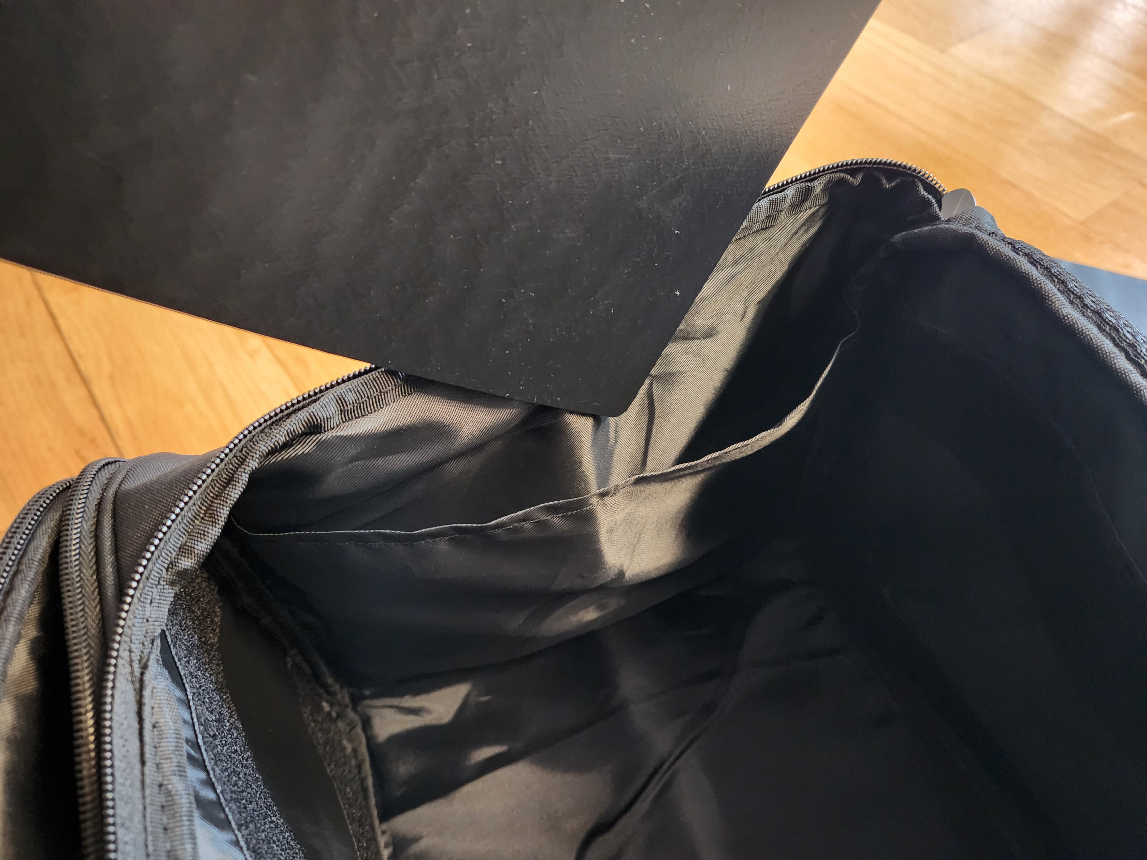 플라스틱 사이드 패널이 들어가 있는 모습입니다. 이 플라스틱 보강 시트가 신의 한 수처럼 가방의 모양과 튼튼함을 잘 살려주는 구성품입니다.