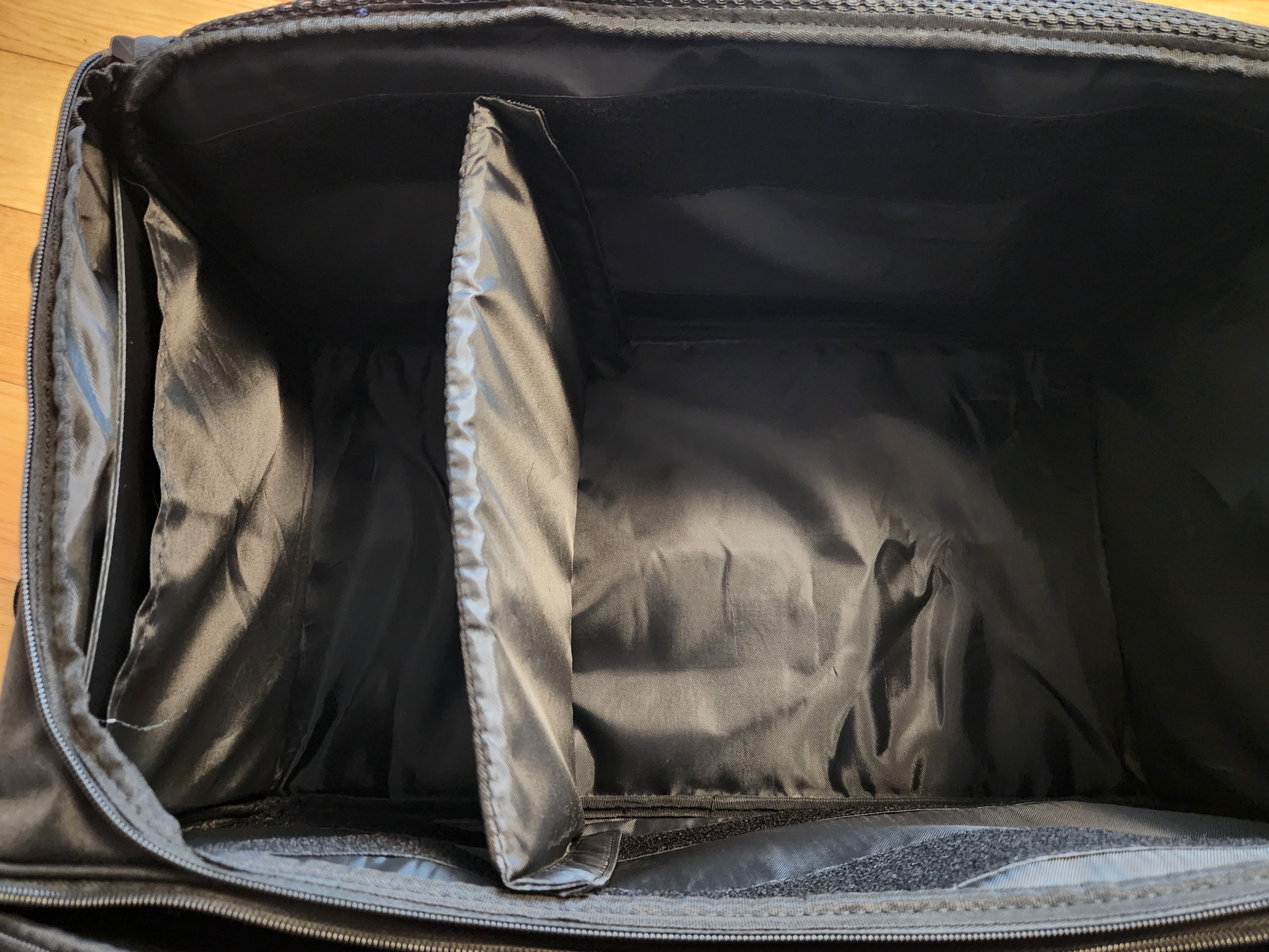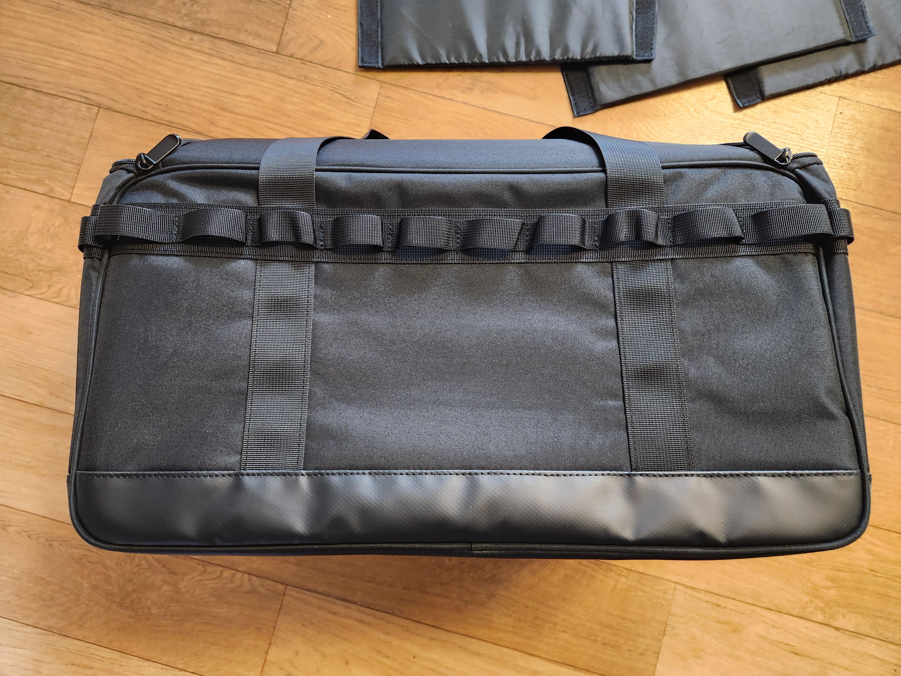 가방 본품 외에 벨크로 방식의 칸막이 3개와 사이드 쪽에 각을 잡아 주고 지지해 주는 역할을 하는 사이드 패널이 2개 들어있습니다.