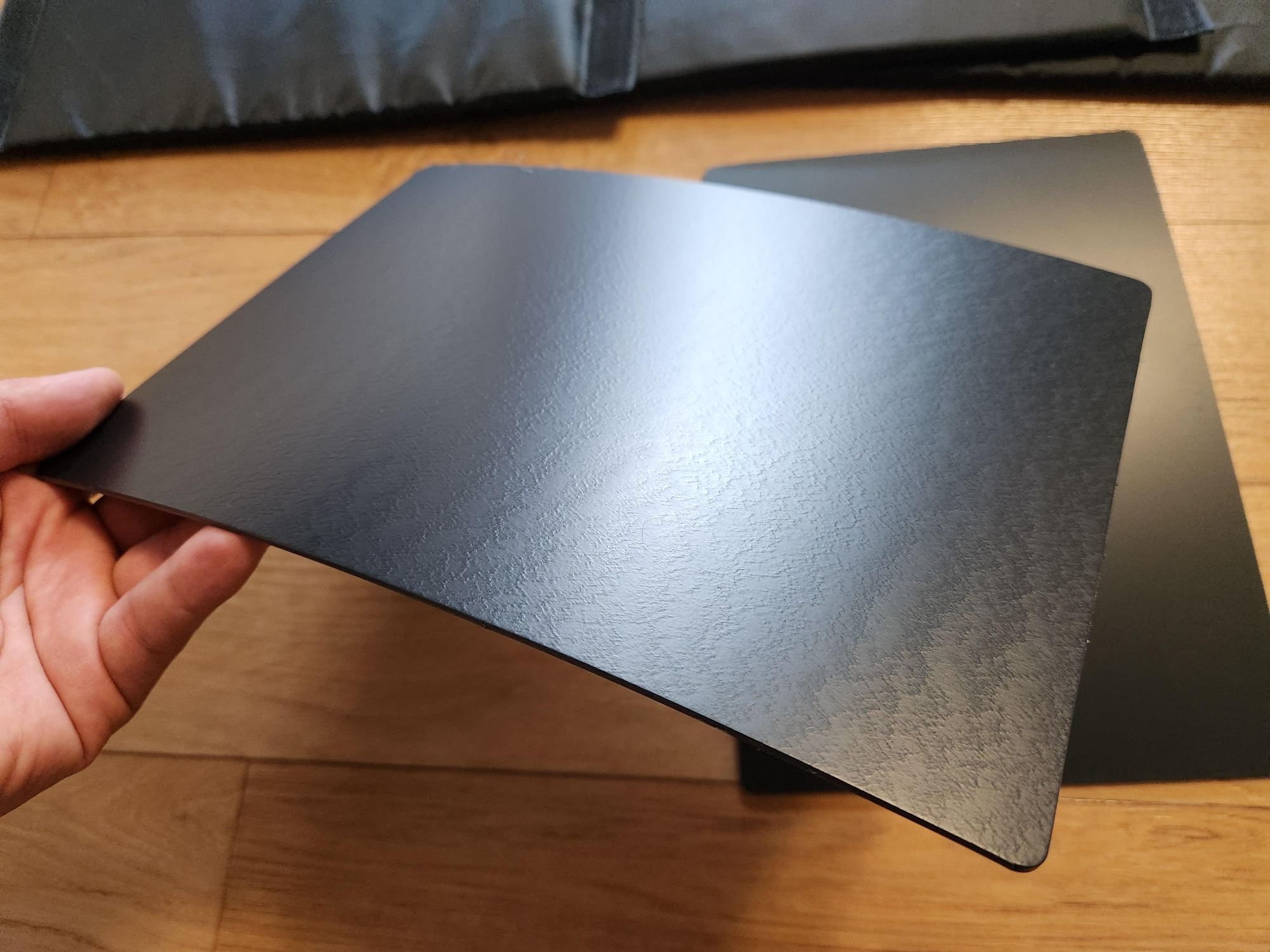 사이드 패널은 플라스틱 소재로 꽤 두꺼운 편으로 가방 옆쪽에 넣어주면 됩니다.