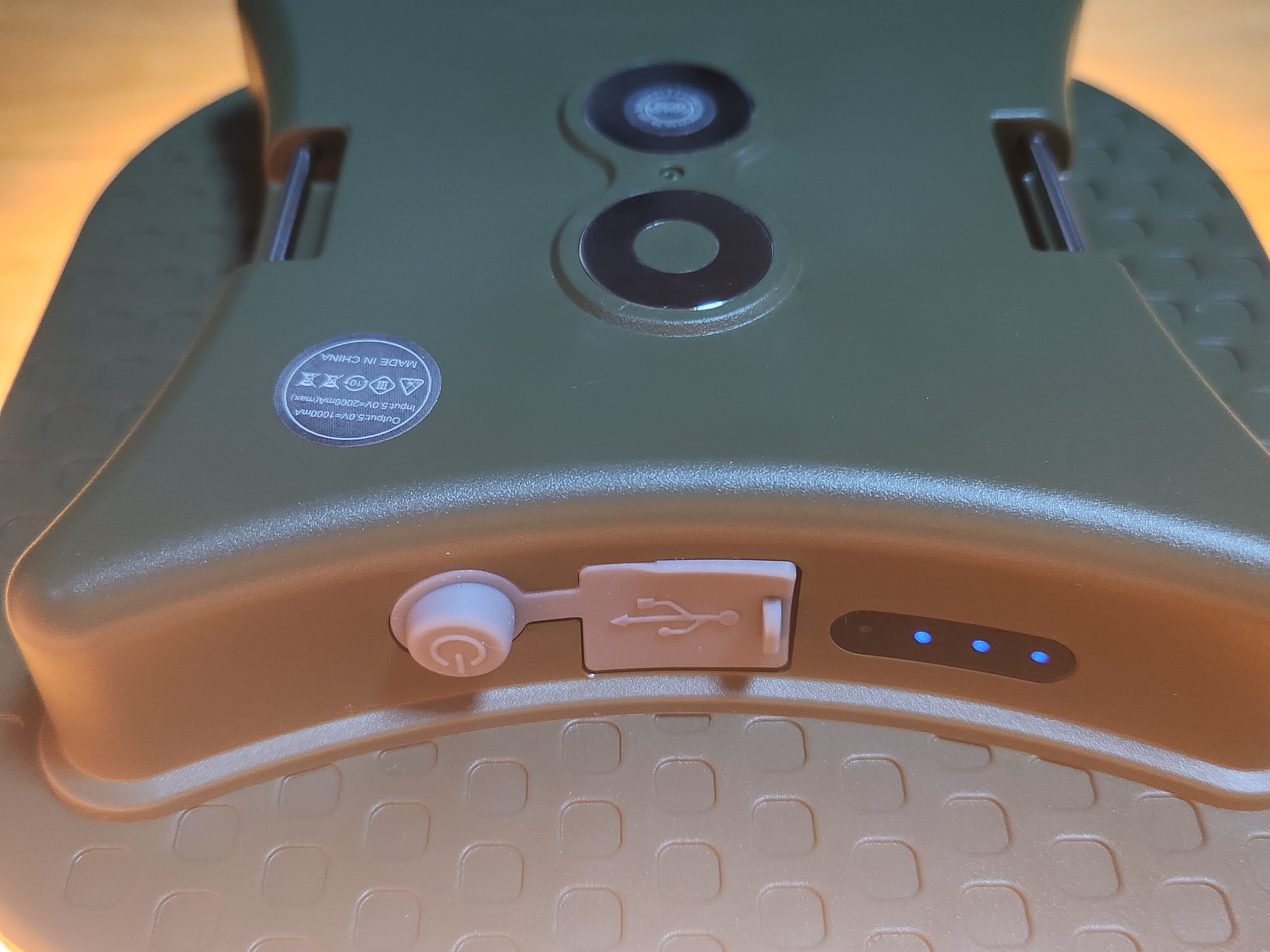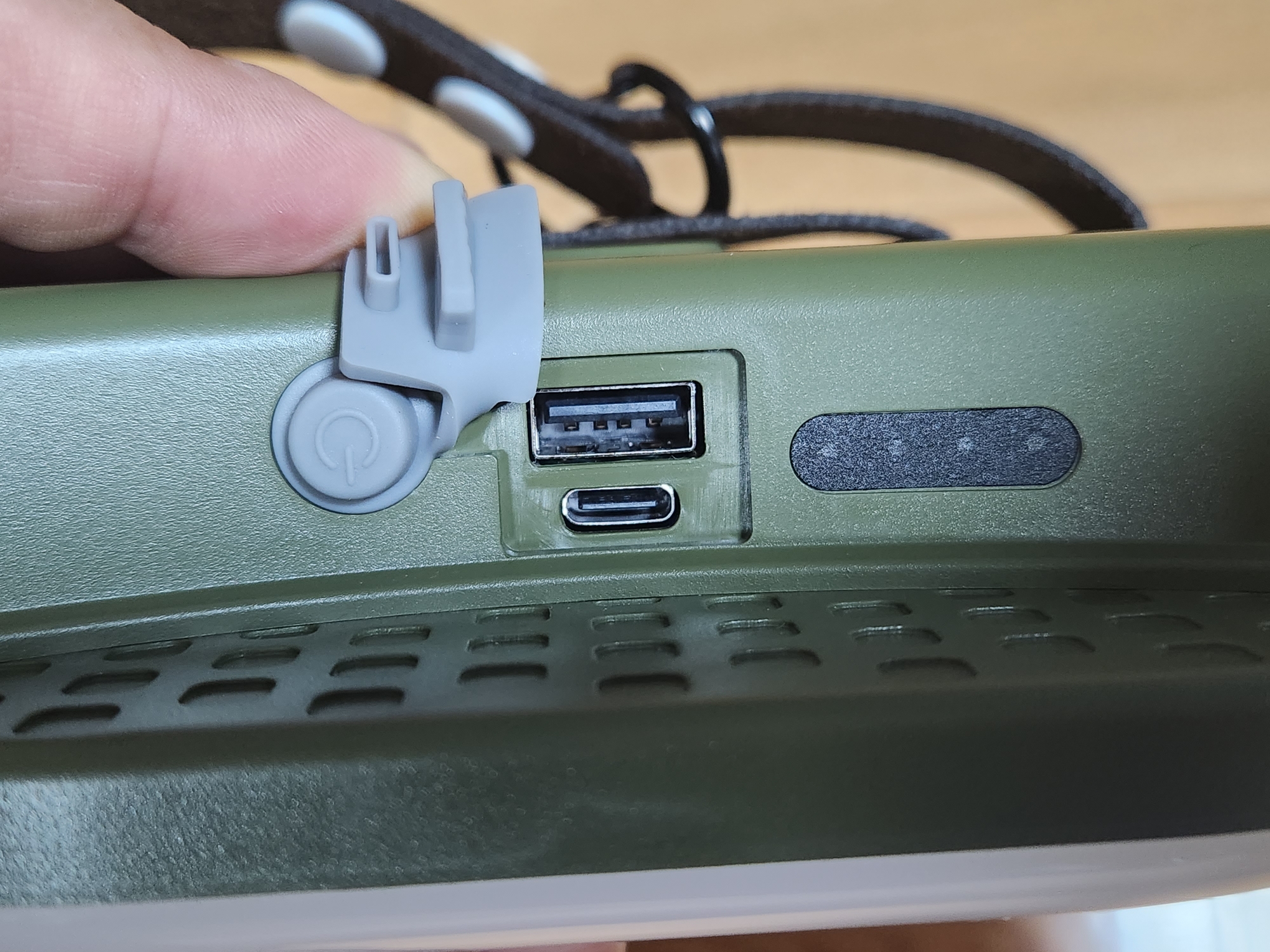 USB포트를 살펴보면 렌턴을 충전할 수 있는 USB-C타입 포트, 보조배터리로 사용할 수 있는 USB-A타입 포트가 있습니다.