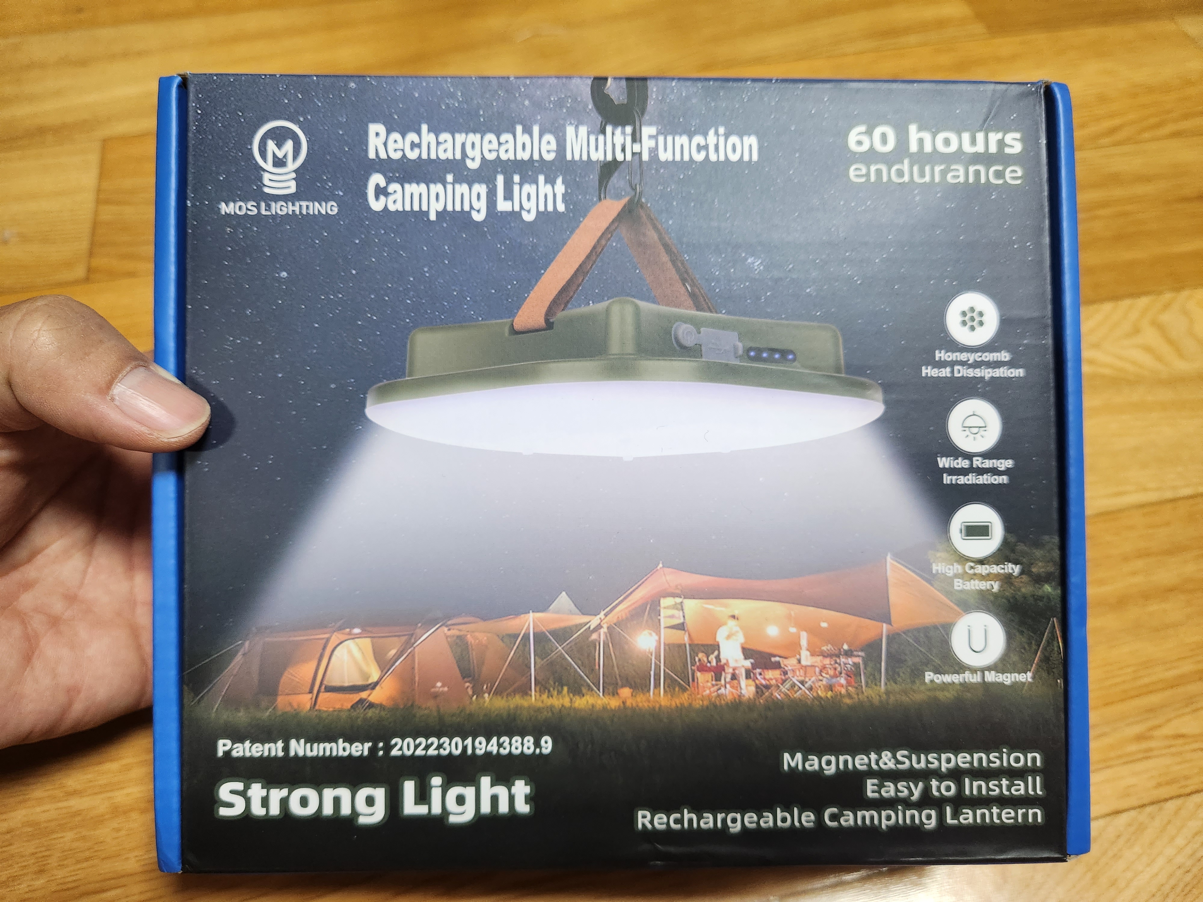기본적인 스펙을 살펴보면 벌집모양 방열구조, 리튬이온 배터리(3* 5200 = 15600mAh), LED(SMD2835), 80w, IPX65 입니다. 최고 밝기 사용 시 10시간 최저 밝기로 사용 시 60시간이 사용가능하다고 합니다. 스펙대로 사용이 가능하다면 2박 정도는 무리 없이 사용이 가능할 것 같습니다.