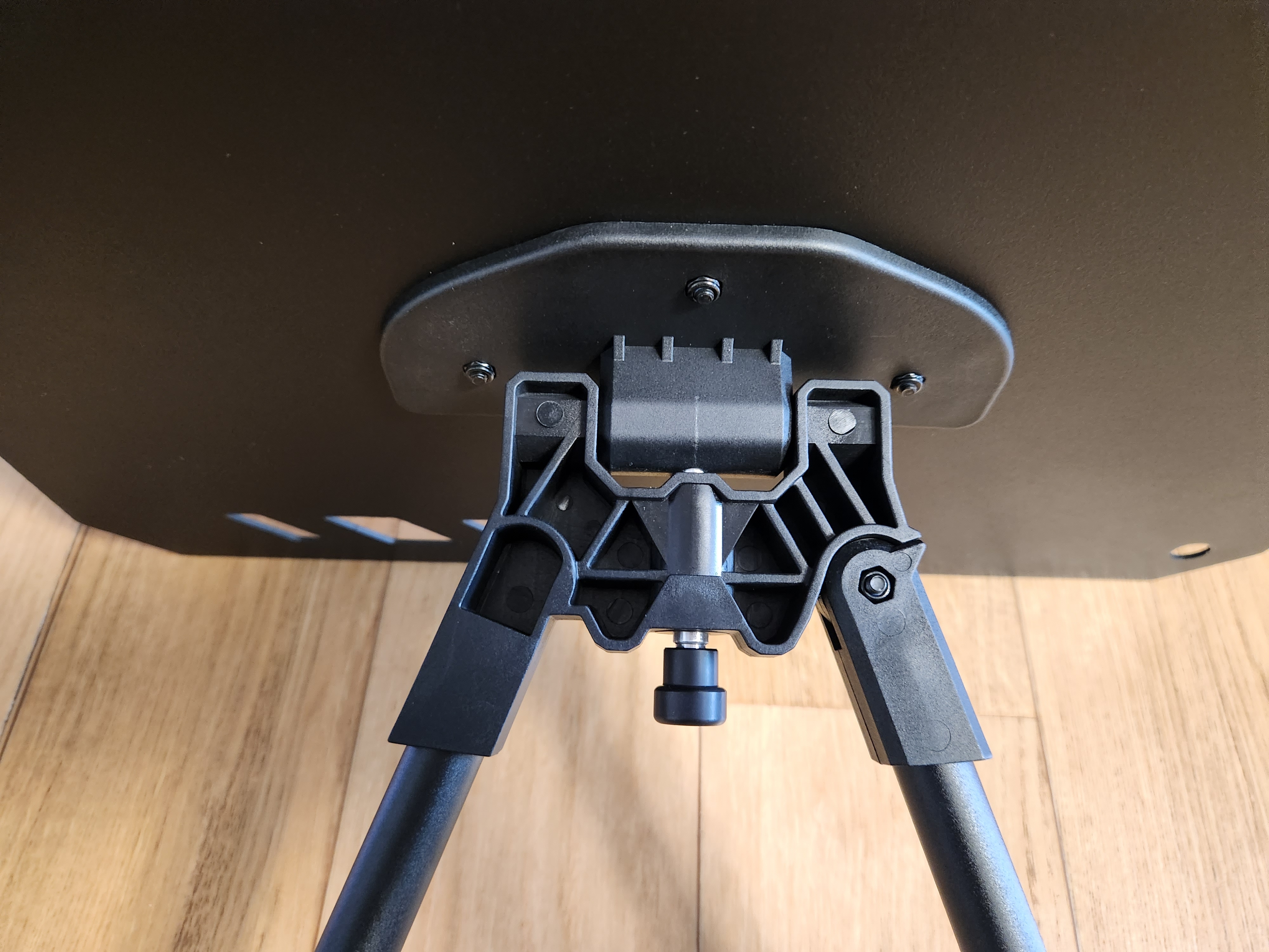 접혀있는 테이블 다리를 당겨서 펼쳐주면 딸깍 소리가 나면서 걸쇠가 걸려서 고정되는 구조입니다. 두 개의 다리 중 하나는 고정된 형태이고 하나는 옆으로 밀어서 펼쳐야 하는 형태입니다.