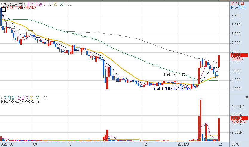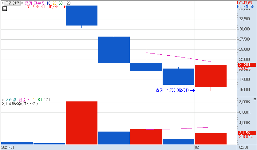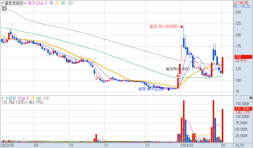 1월 24일 신규상장 후 2일 연속 상한가를 기록하면서 상승을 했지만 이후 과도한 하락 이후 금일 과대낙폭에 의한 기술적 반등을 한 것으로 추측된다.