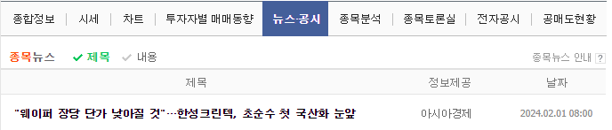 "초순수 첫 국산화 눈앞" 뉴스에 상한가를 기록한 것으로 추측됨
