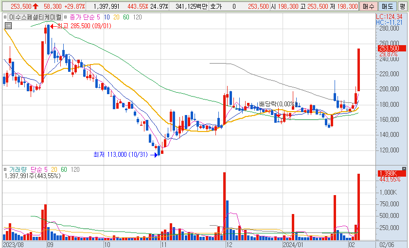 ** 합병 앞둔 이수스페셜티케미컬, 외국인 '사자'에 상한가