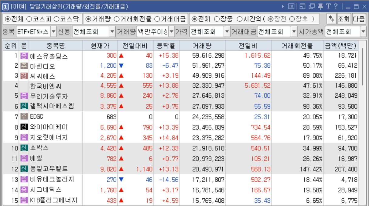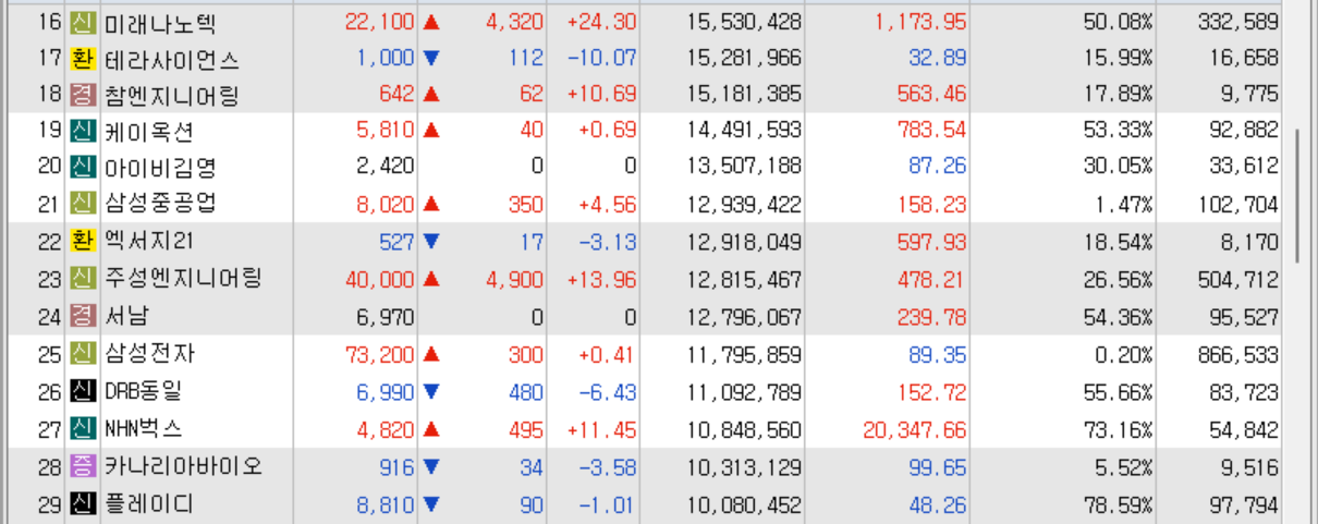 💐 천만 주 이상 거래 종목 중 테마 및 특징주 정리 💐