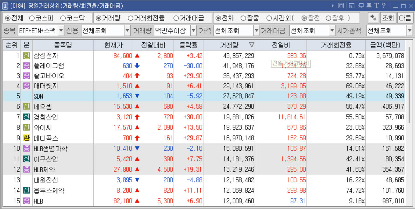 𖦹 천만 주 이상 거래 종목 𖦹