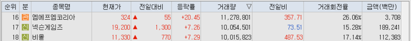 코스피, 코스닥 상한가 종목과 천만 주 이상 거래 종목들을 정리해 보겠습니다.