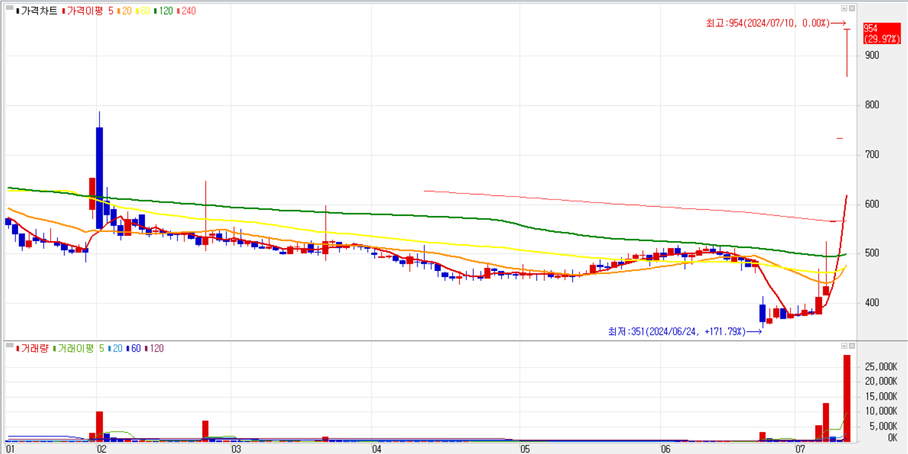 ** 현재 주가 954원으로 3연상 중 **