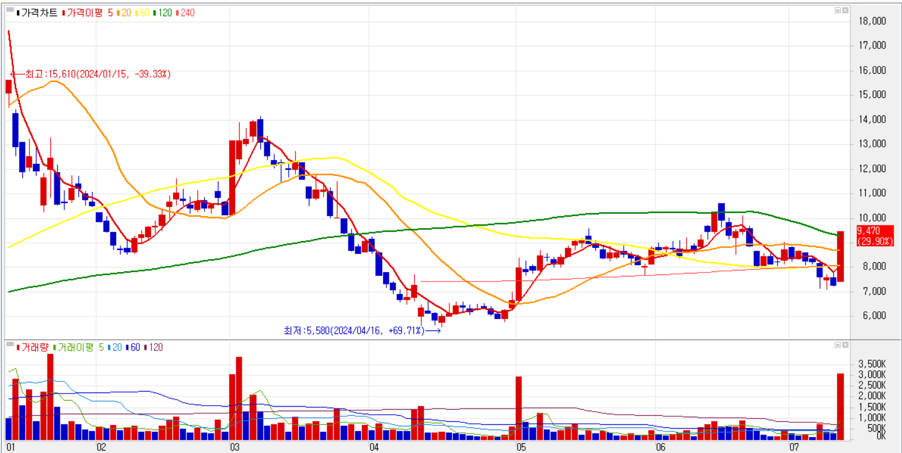 | 상한가 종목 및 천만주 이상 거래량 종목 분석(2024.07.05) (1) | 2024.07.05 |