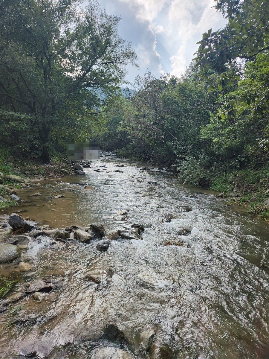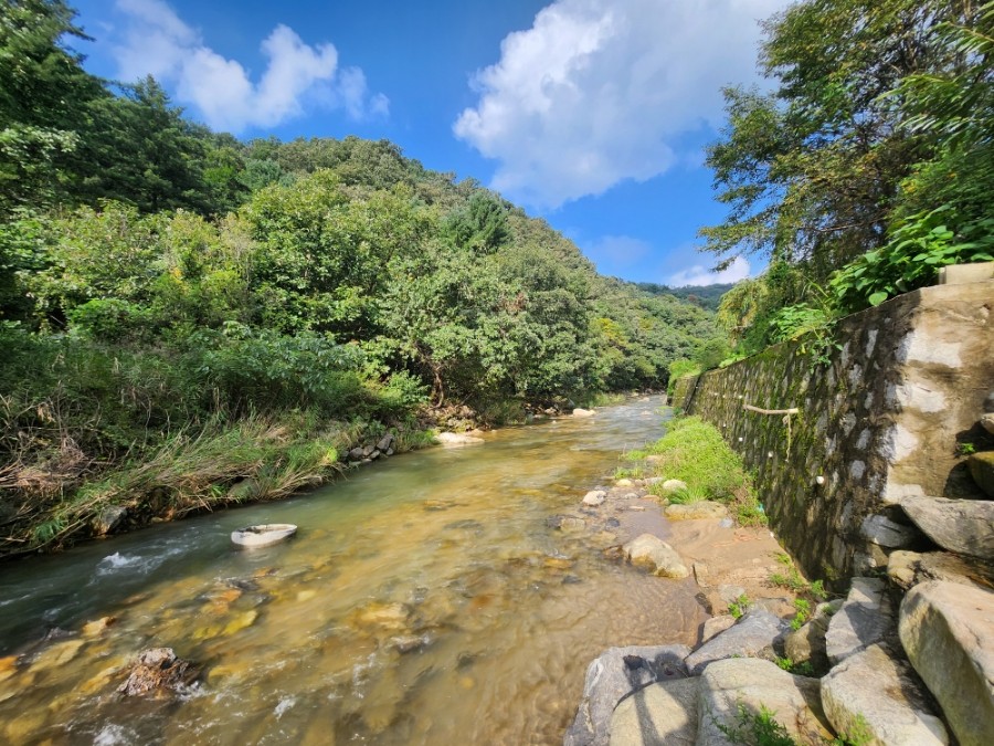 비가 한차례 지나 간 후 굉장히 맑은 하늘과 풍부한 수량의 계곡 모습입니다.