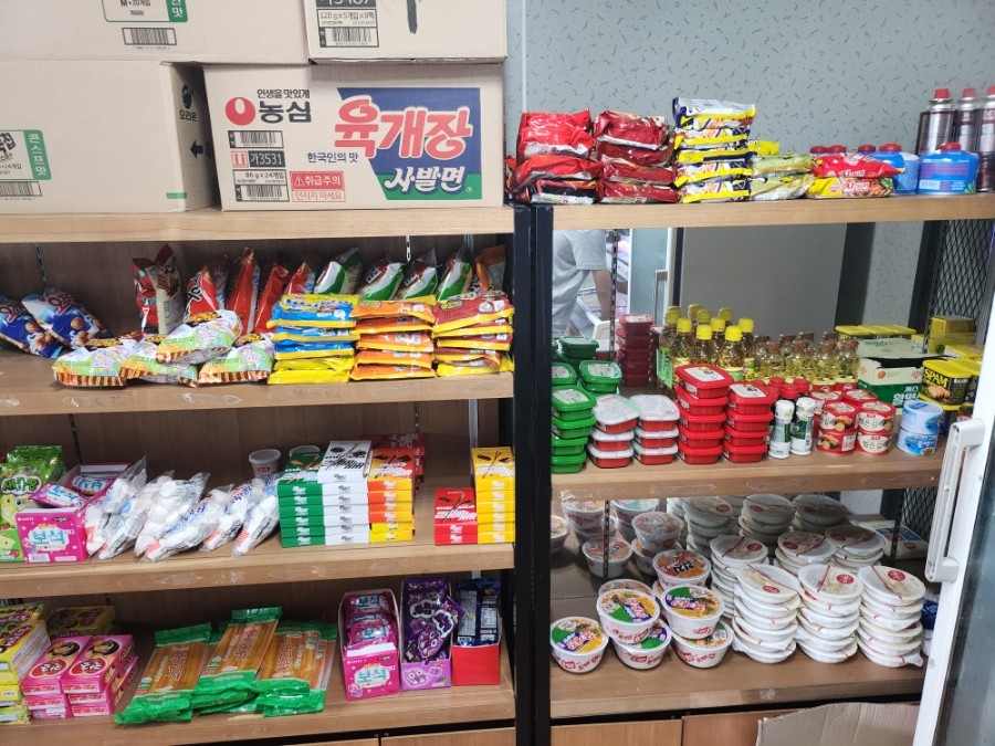 라면, 햇반, 각종 양념, 과자, 아이스크림, 음료수, 주류 등 다양하게 구비되어 있으니 혹시 준비를 못 한 물품이 있더라도 웬만한 건 해결이 가능합니다.