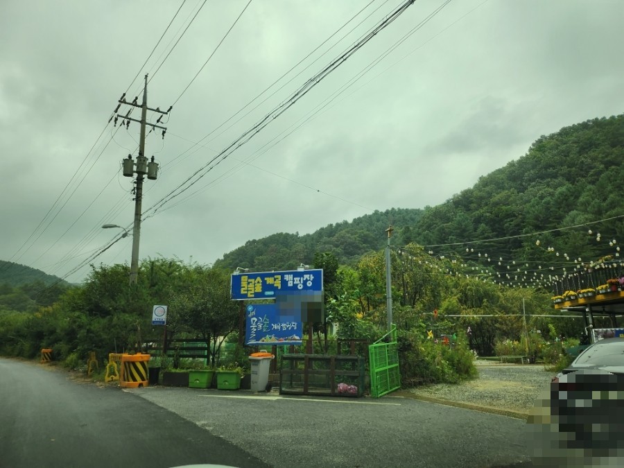 도로에서 바라본 캠핑장 입구입니다. 오른쪽 출입구로 들어가시면 됩니다.
