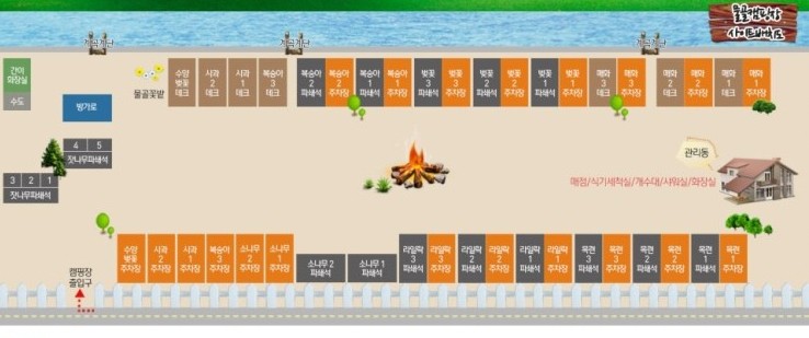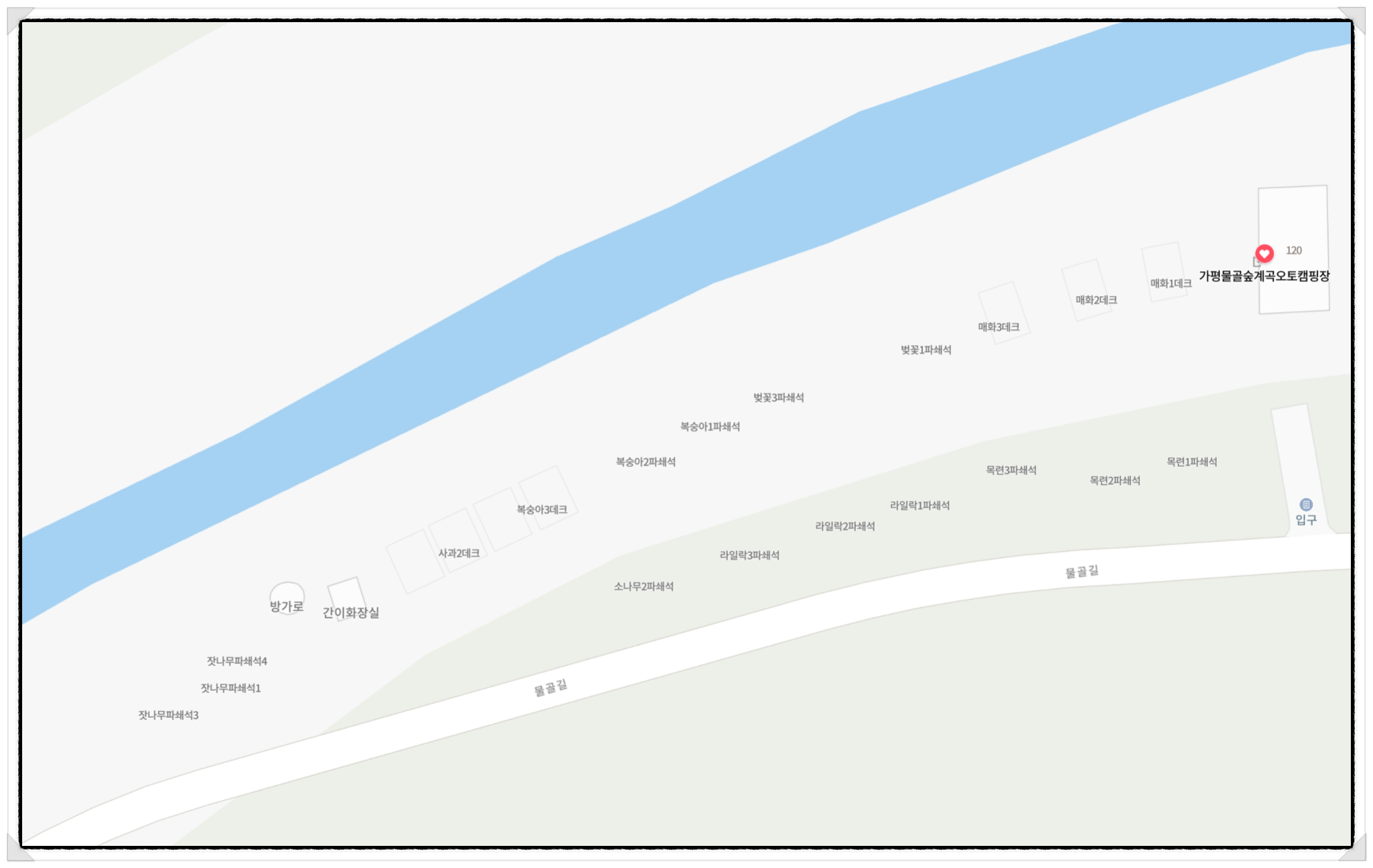 사이트는 캠핑장 공식 카페의 배치도와 네이버 지도를 확대해 보시면 잘 나와 있습니다. 참고하세요.