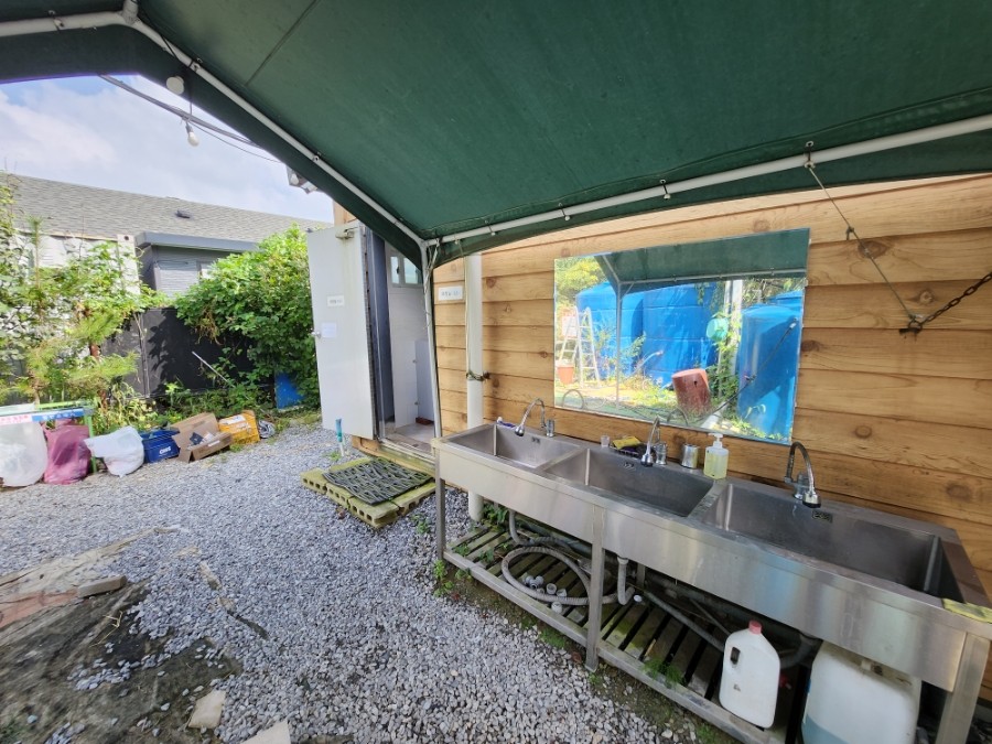 여자화실과 남자화장실 사이에 있는 야외 개수대입니다. 왼쪽은 분리수거장입니다.