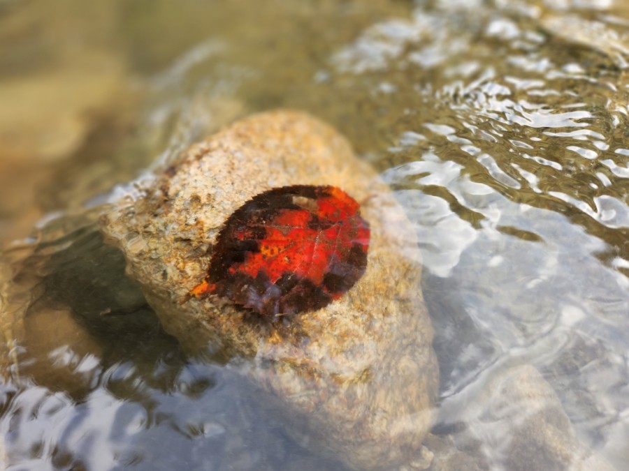 계곡쪽 돌 위에 나뭇잎이 떨어지지 않고 붙어 있는데 색이 너무 고와서 한번 찍어봤어요.