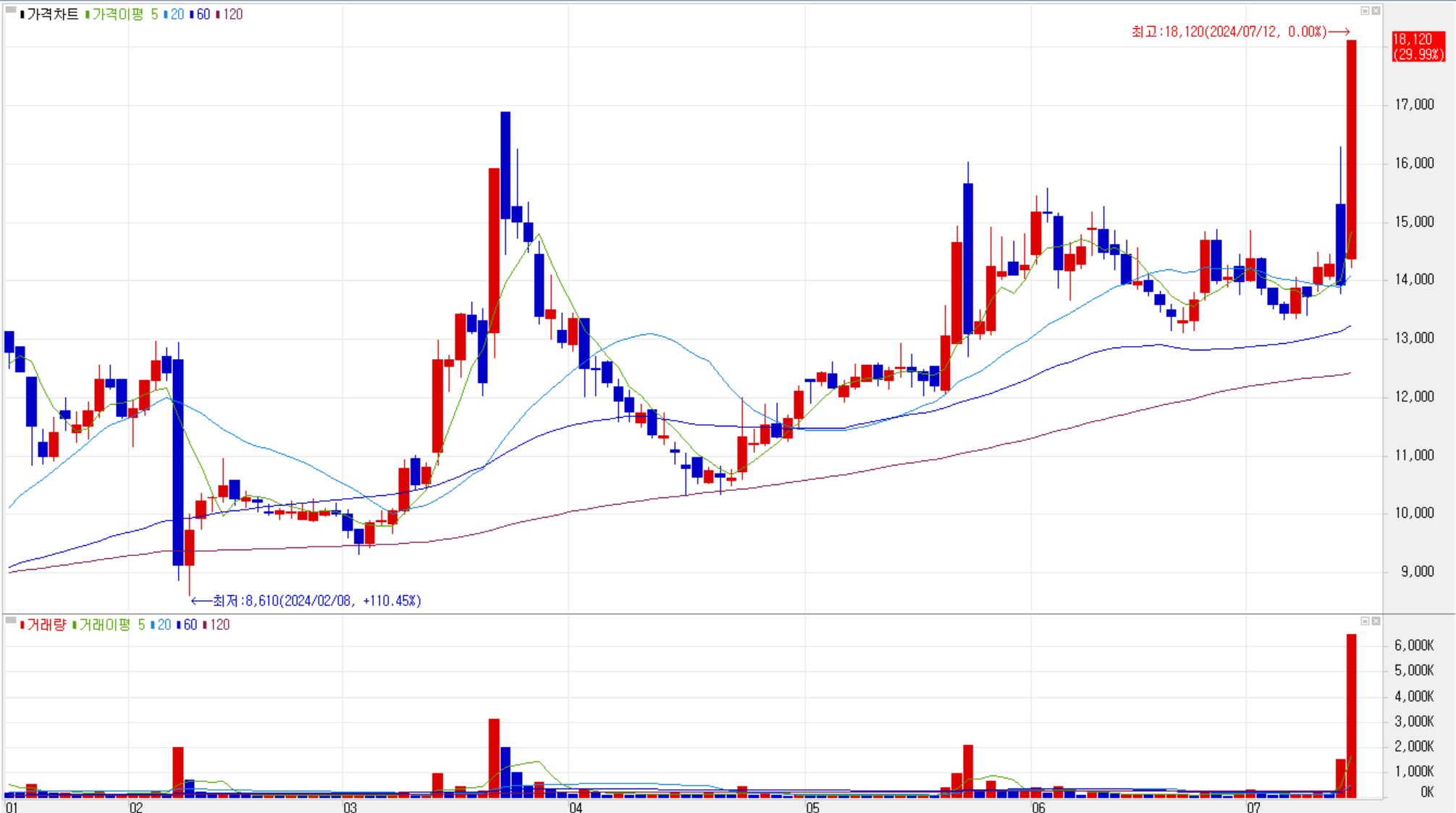 | 상한가 종목 및 천만주 이상 거래량 종목 분석(2024.07.15) (2) | 2024.07.15 |