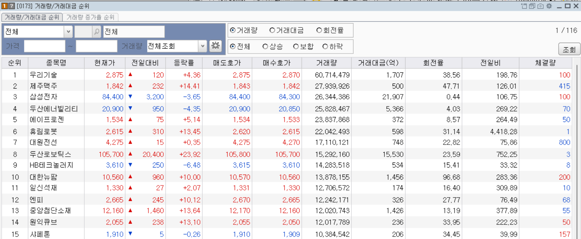 코스피, 코스닥 상한가 종목과 천만 주 이상 거래 종목들을 정리해 보겠습니다.