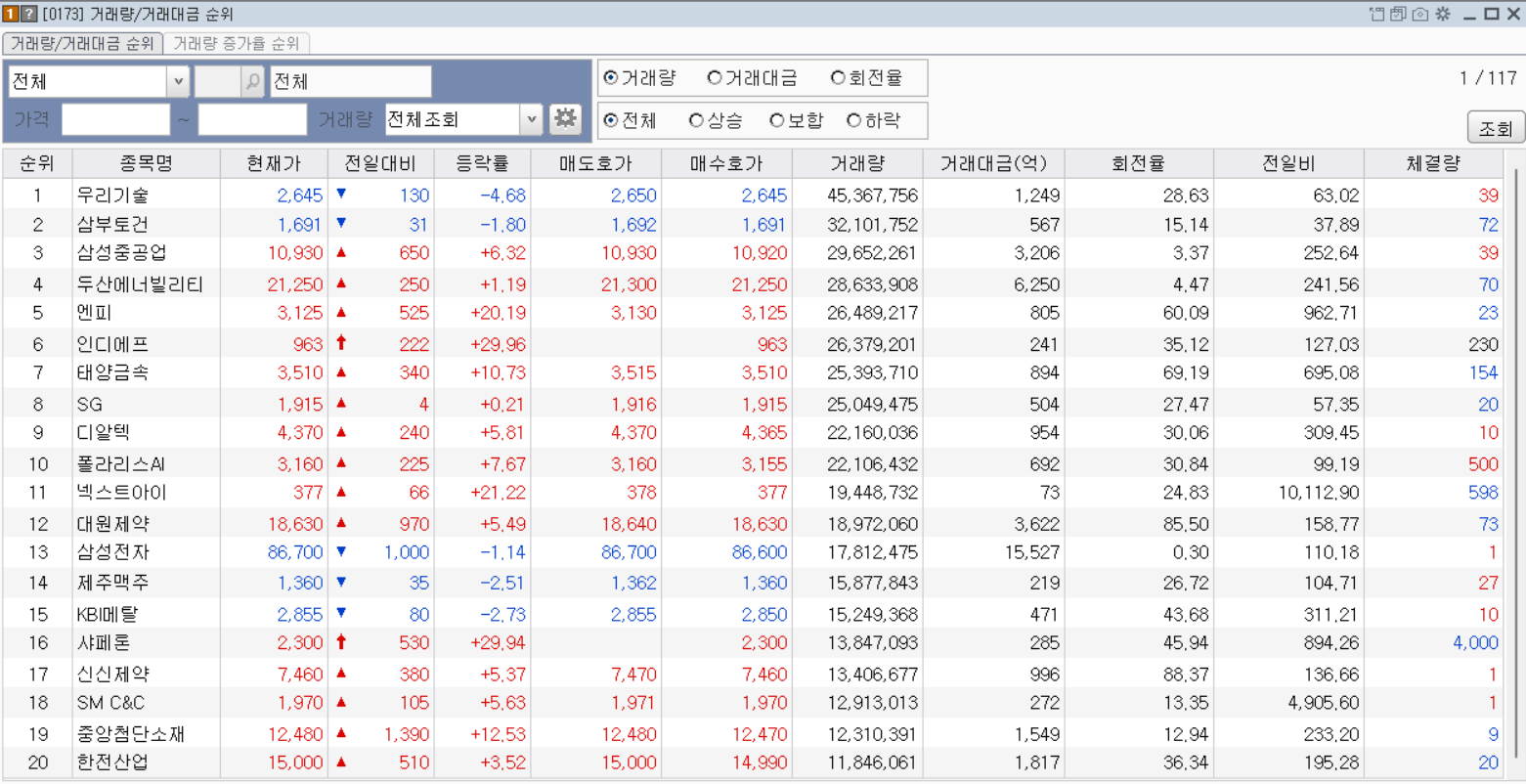 코스피, 코스닥 상한가 종목과 천만 주 이상 거래 종목들을 정리해 보겠습니다.