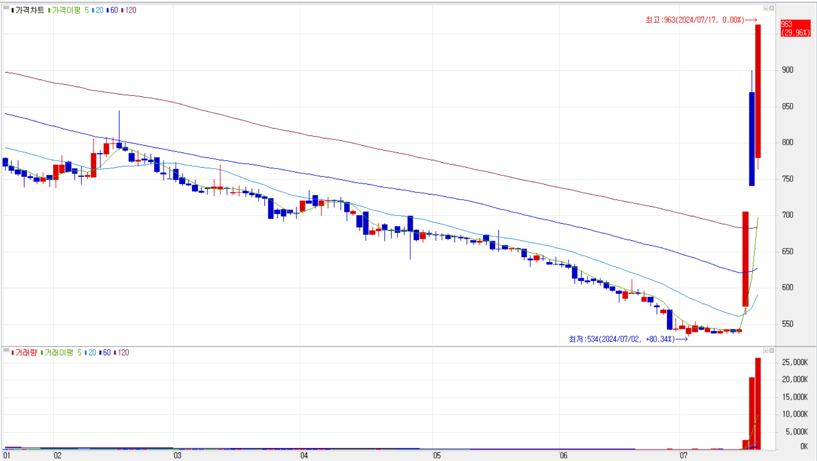 | 상한가 종목 및 천만주 이상 거래량 종목 분석(2024.07.15) (2) | 2024.07.15 |