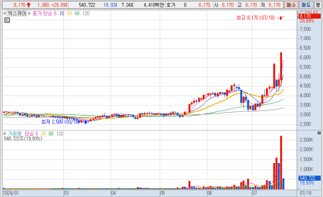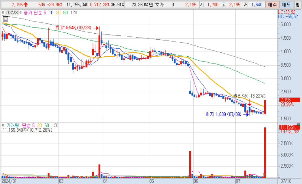 * DXVX : 금일 상한가 종목