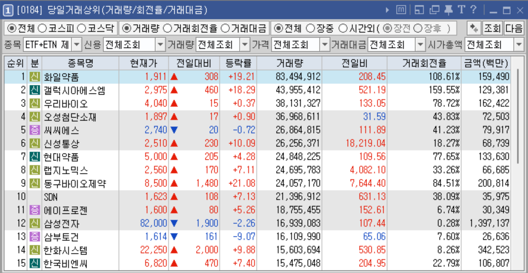 코스피, 코스닥 상한가 종목과 천만 주 이상 거래 종목들을 정리해 보겠습니다.