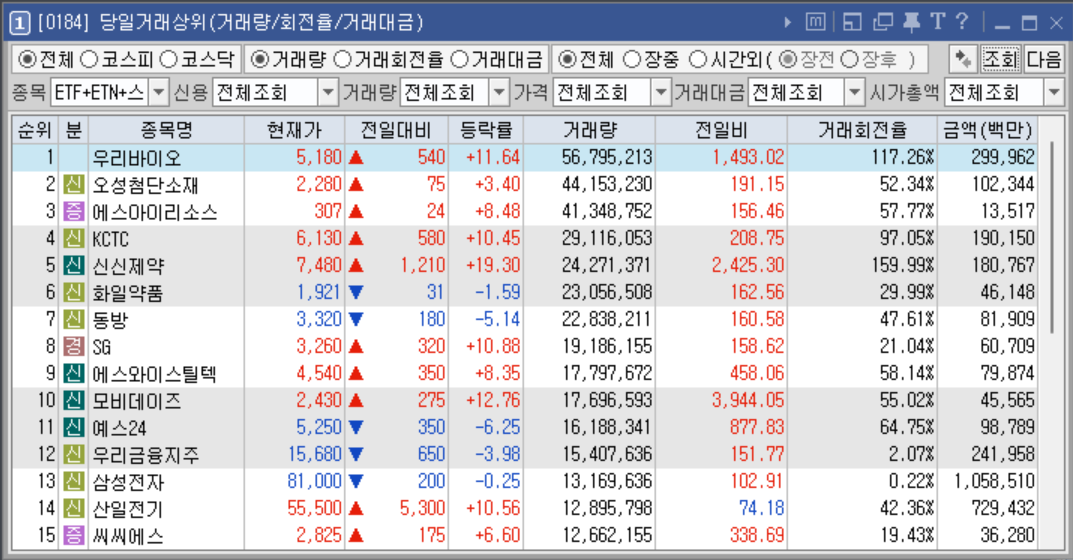 코스피, 코스닥 상한가 종목과 천만 주 이상 거래 종목들을 정리해 보겠습니다.