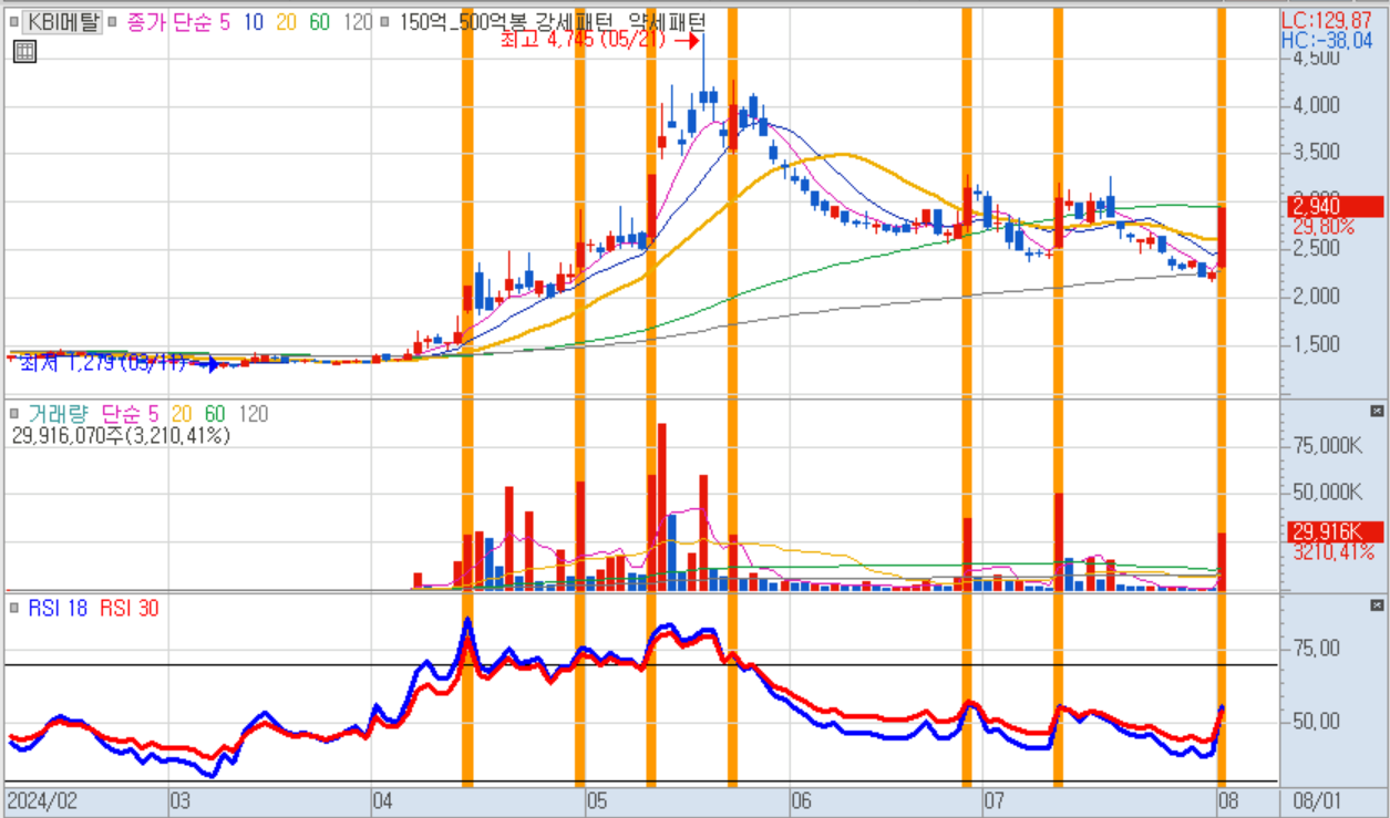 * KBI메탈 : 금일 상한가 종목( AI 투자 기대감 재부각 되면 구리 가격 상승 속 전선주 급등 )