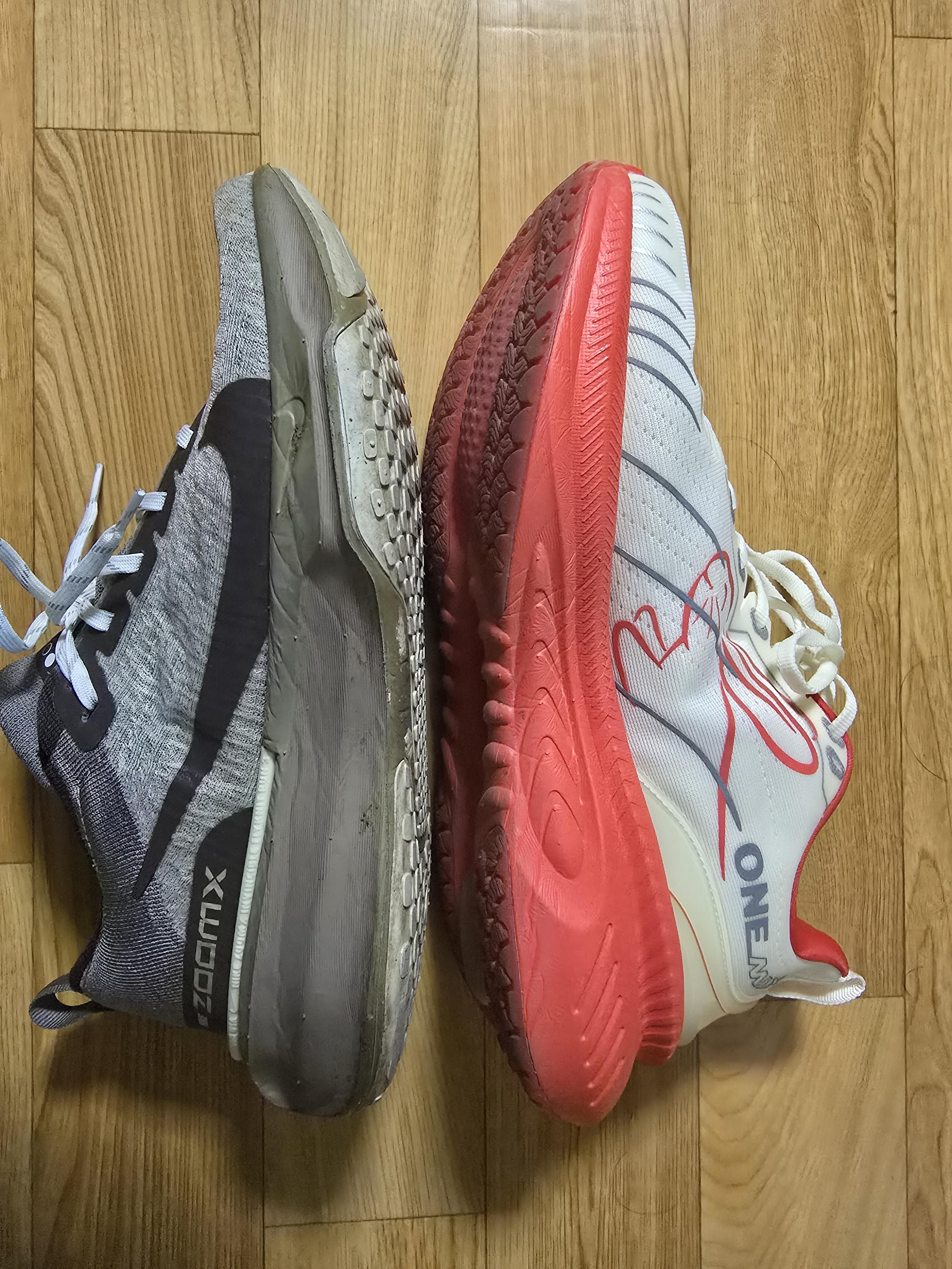 나이키 인빈서블 3과 비교 시 밑창 두께는 비슷해 보였지만 쿠션의 느낌은 사뭇 달랐습니다.