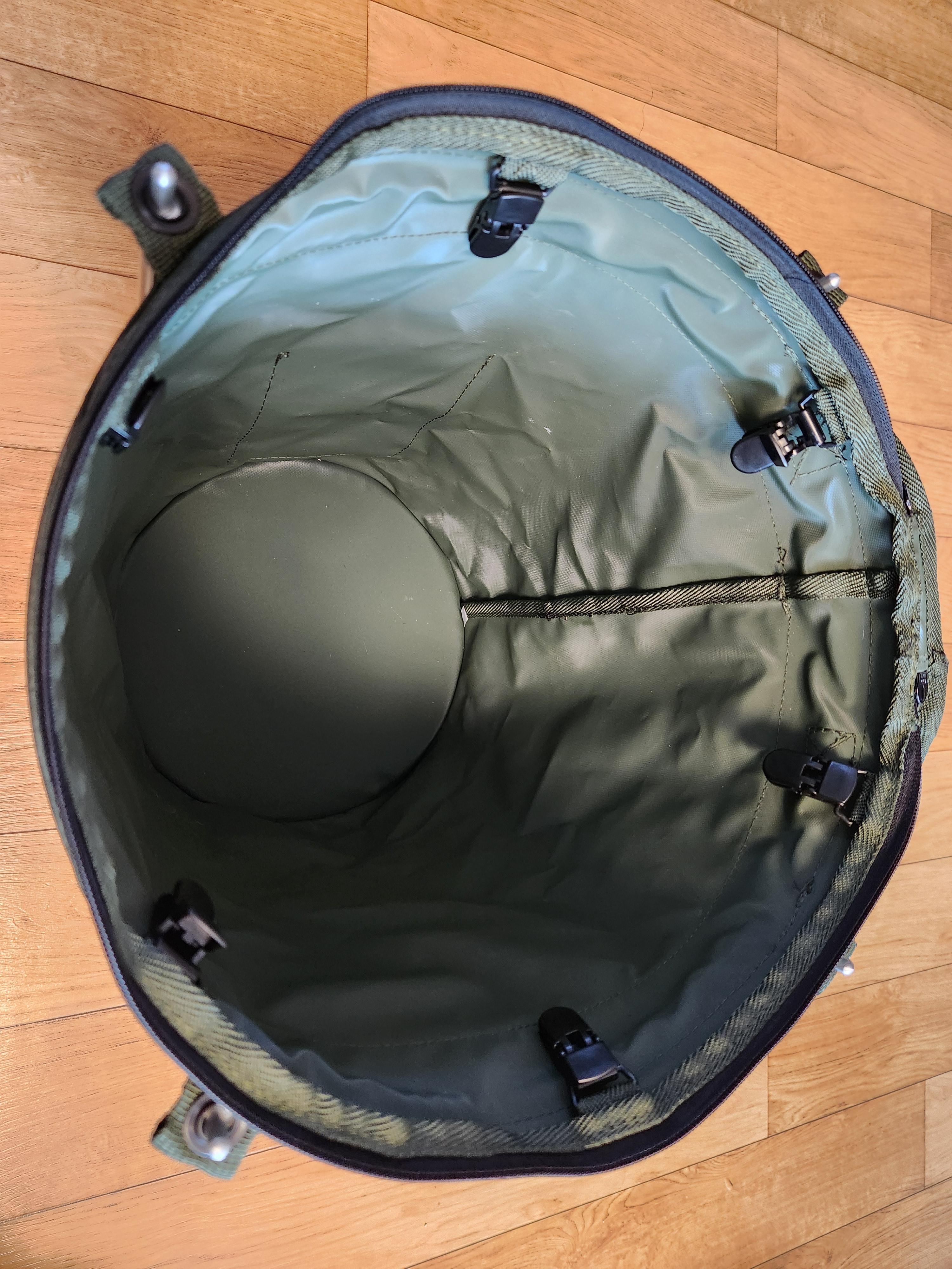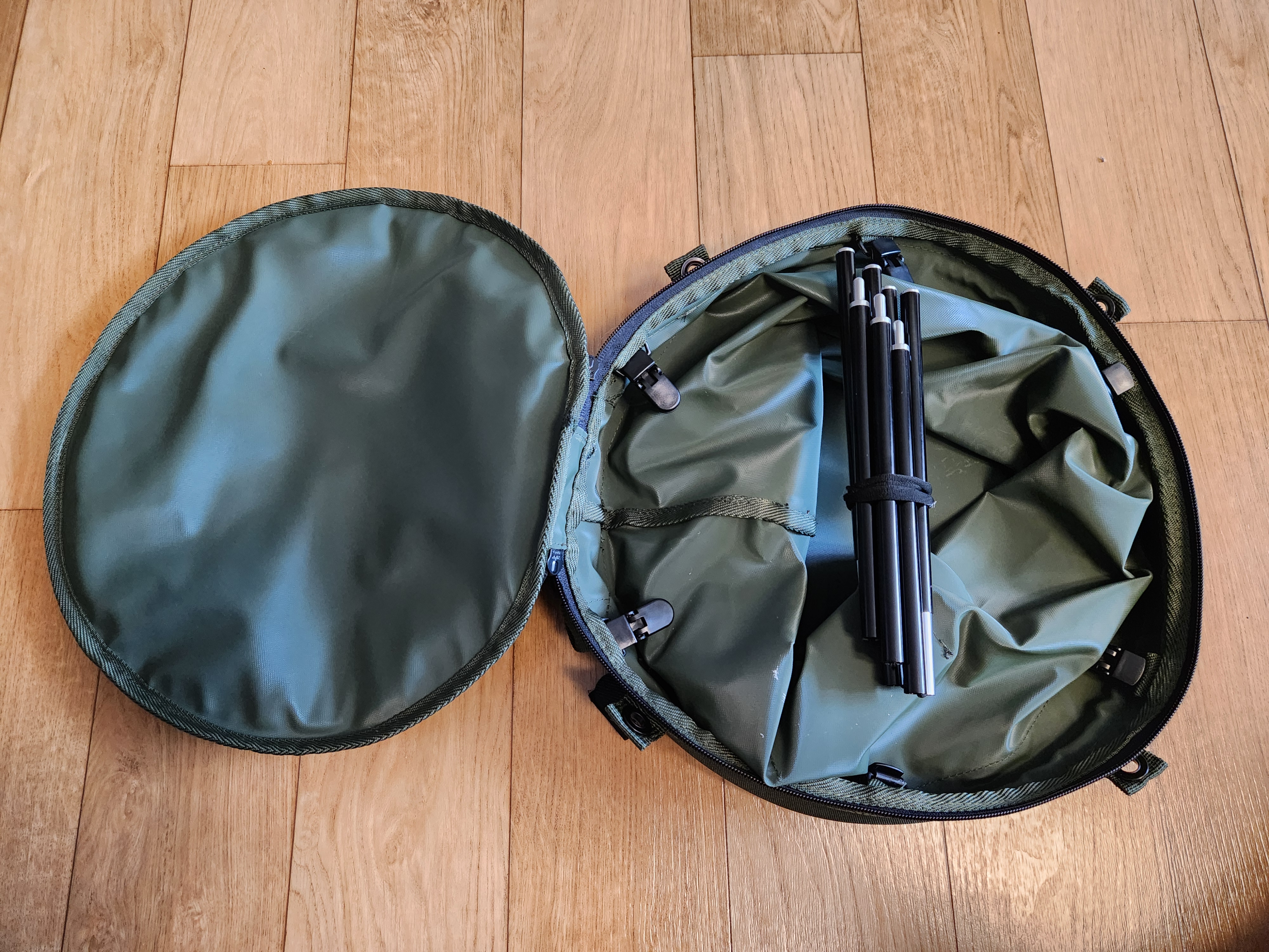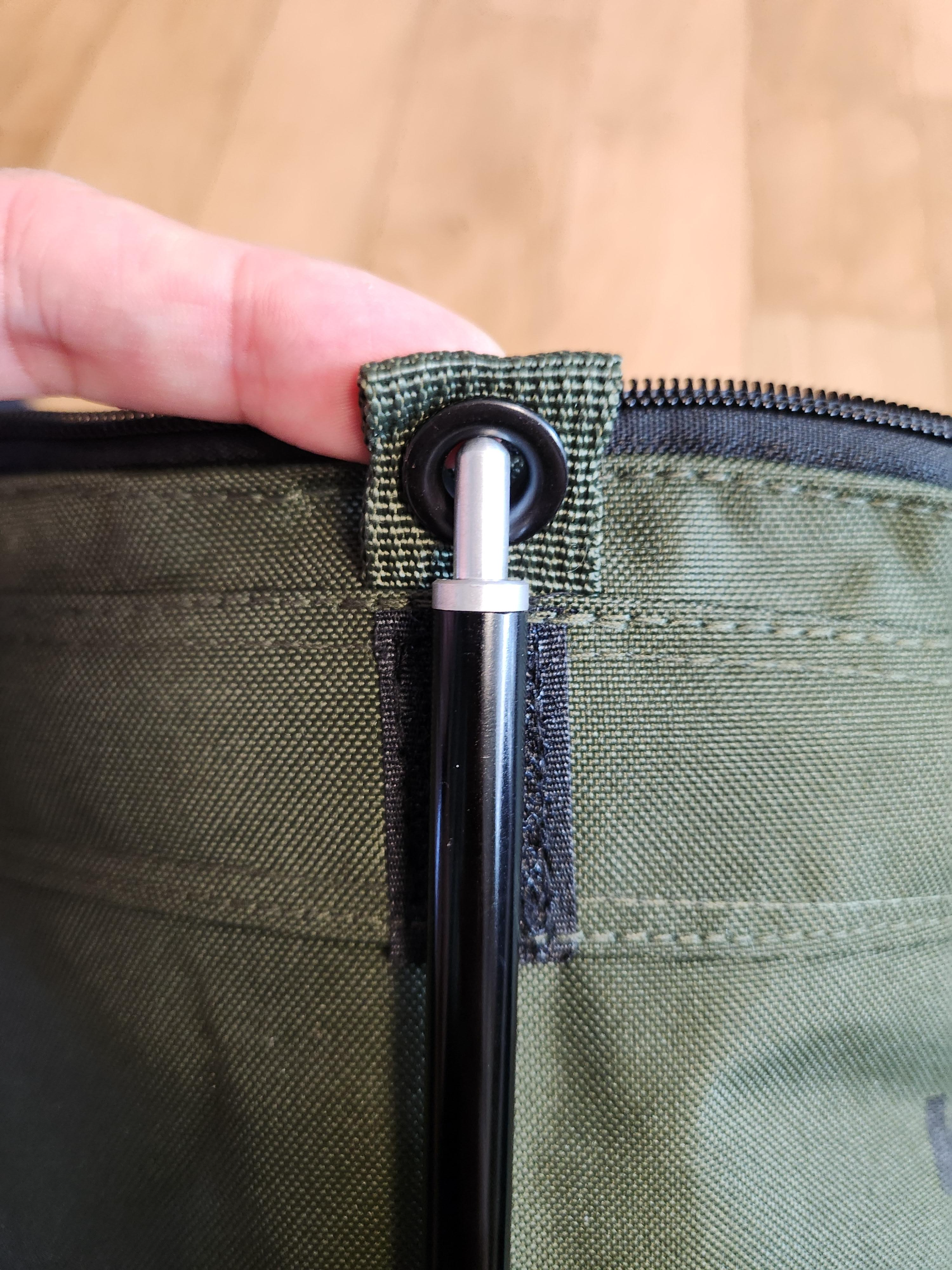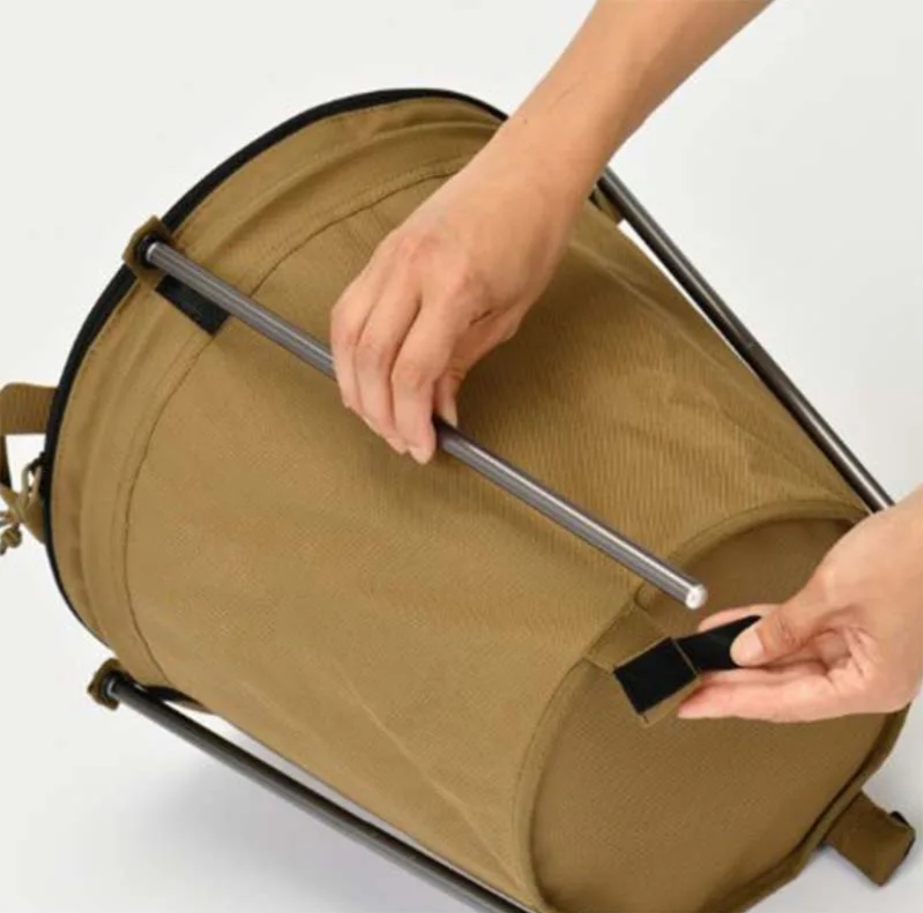 밑에 부분은 지름이 약간 더 작고 벨크로 처리되어 있어 제품을 접을 때 견고하게 잡아줍니다.