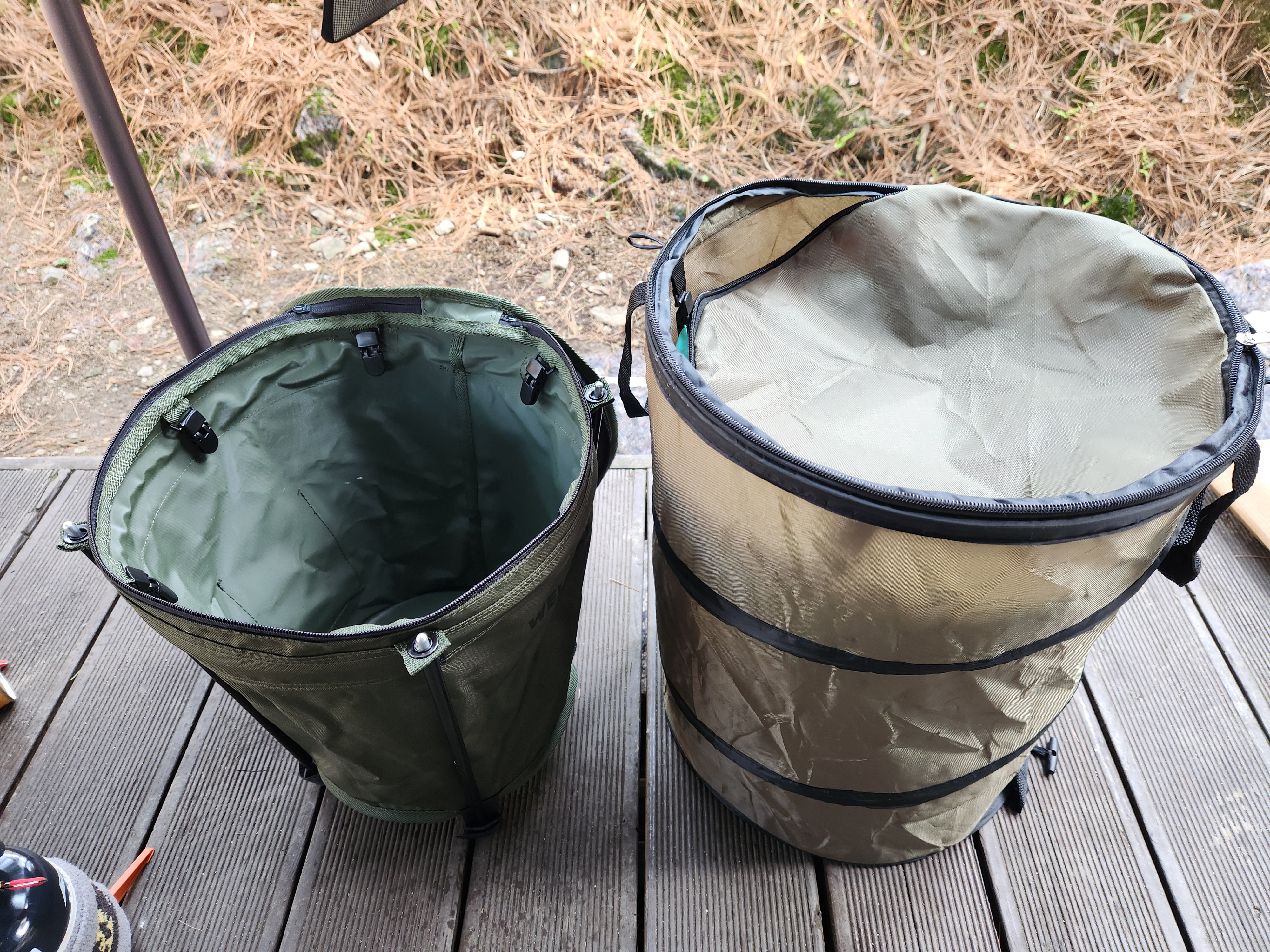 가장 궁금하실 수 있는 부분으로 다이소 캠핑용 쓰레기통과 비교샷입니다.