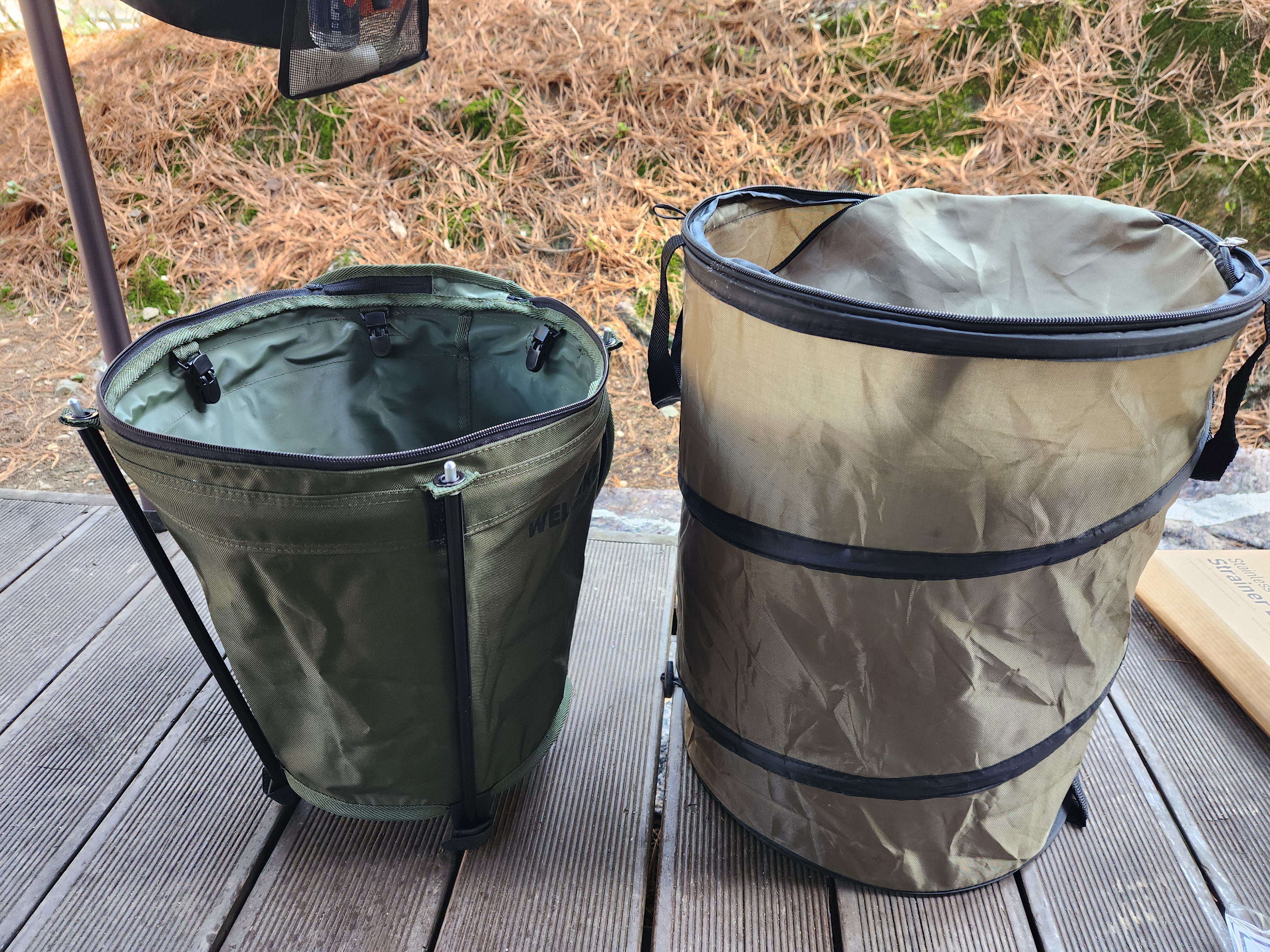 사용용도에 따라 제품의 활용도는 달라질 수 있습니다. 저 같은 경우에는 일반 20L 쓰레기통을 캠핑장에서 사용한다면 다이소 제품이 적당해 보입니다. WELLHIKE 제품은 분리수거 용품 또는 물건 보관함으로 쓰는 게 합리적이지 않을까 개인적으로 생각해 봅니다.